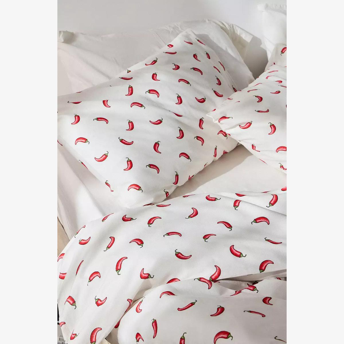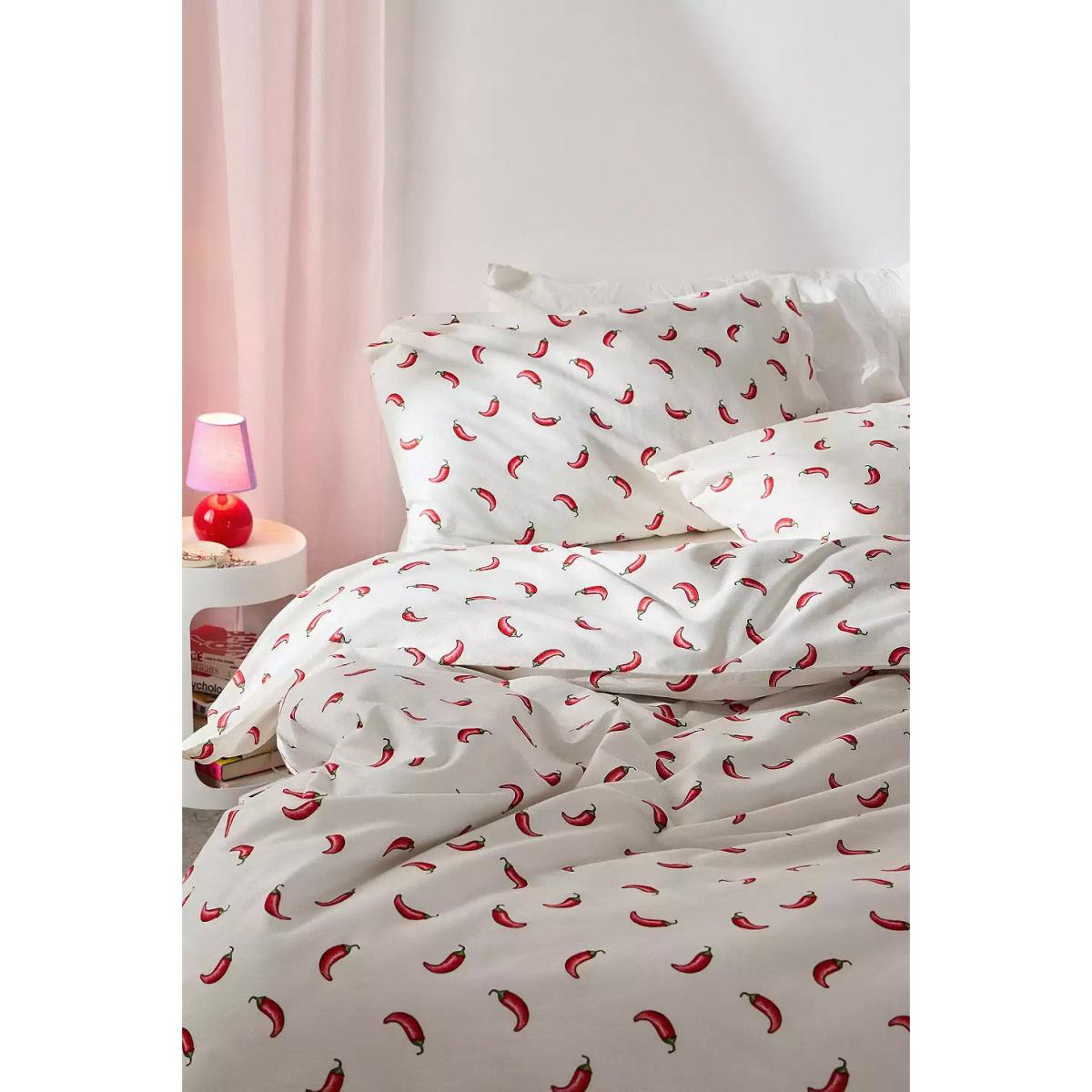 Spice up your bedding with this fun duvet set. Complete with a duvet cover and matching pillowcases, the soft cotton set features an all-over hot chilli print, perfect for curling up under at bedtime. **Content + Care** \- 100% Cotton \- Machine wash **Size** \- Single (includes 1 pillowcase): 135cm (W) x 200cm (H) \- Double (includes 2 pillowcases): 200cm (W) x 200cm (H) \- King (includes 2 pillowcases): 230cm (W) x 220cm (H) \- Pillowcase: 75cm x 50cm