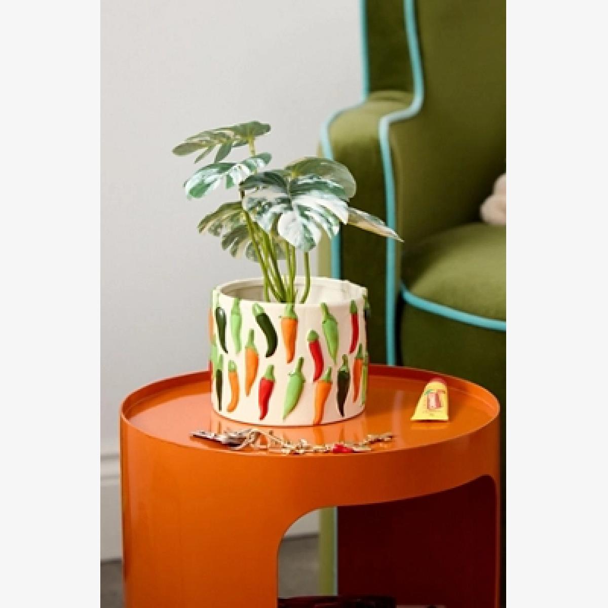 I love the chilli pepper design on this plant pot - it adds a playful yet contemporary touch that can easily liven up any space. It works particularly well in modern, eclectic, or boho interiors, where it can be paired with colourful accessories or layered with textured textiles. A practical styling tip is to use it to house a vibrant or leafy plant that can complement the colourful peppers - it’s perfect for indoor spaces like living rooms or kitchens. To keep the look cohesive, consider placing it on a minimalist surface or a natural wooden table to let the fun design stand out without overwhelming the room.