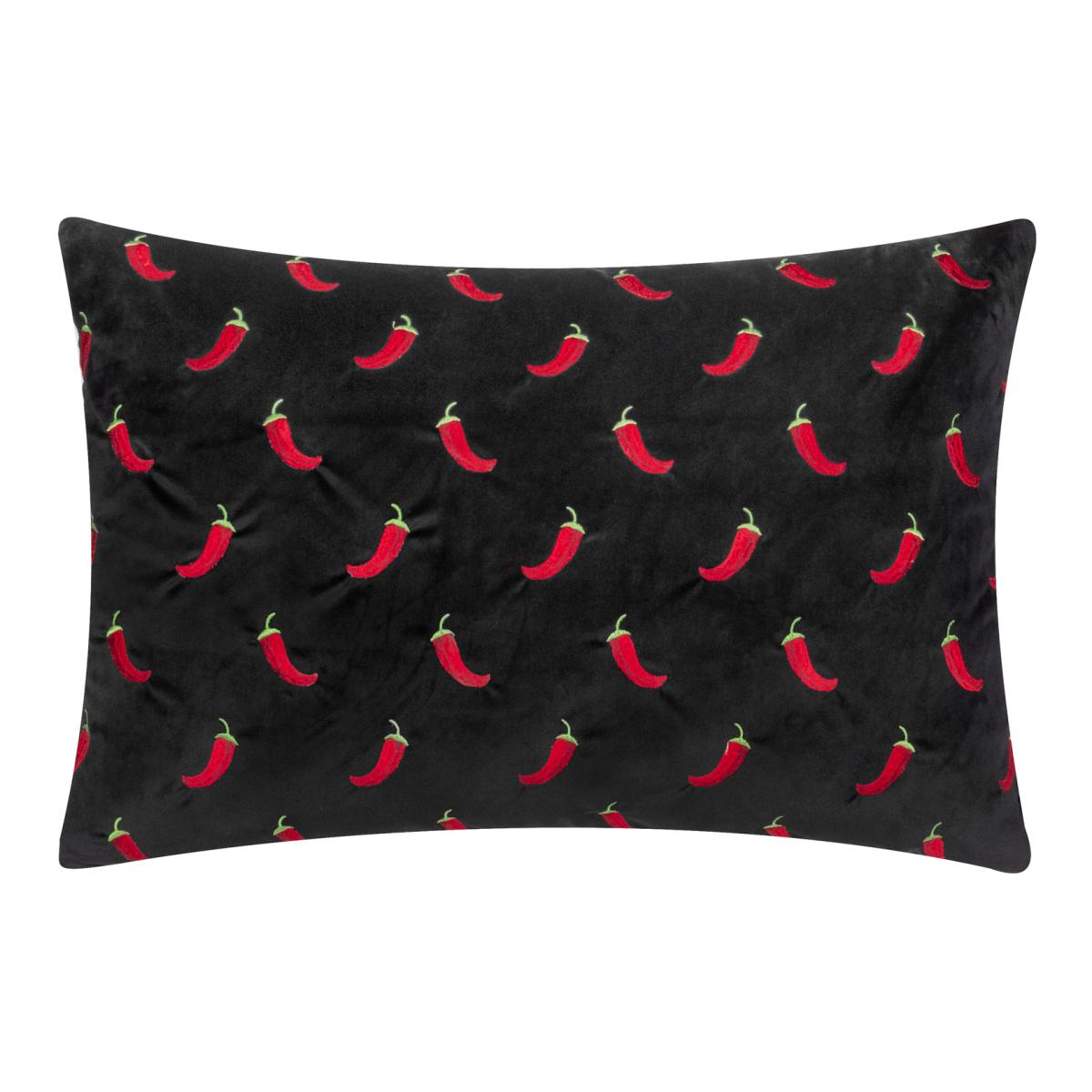 A cute and individual piece, a spice lover paradise! The Chillies cushion features a repeated design of embroidered red hot chillies, woven on a luxurious velvet base. Perfect for adding a pop of color and personality to any space, this cushion is sure to be a talking point among your guests. The vibrant tones and intricate embroidery make it a standout piece that will liven up any room. But the Chillies cushion is not just aesthetically pleasing, it also offers comfort and quality. Made with high-quality materials, the velvet base provides a soft and cosy feel while the embroidered chillies add texture and depth.