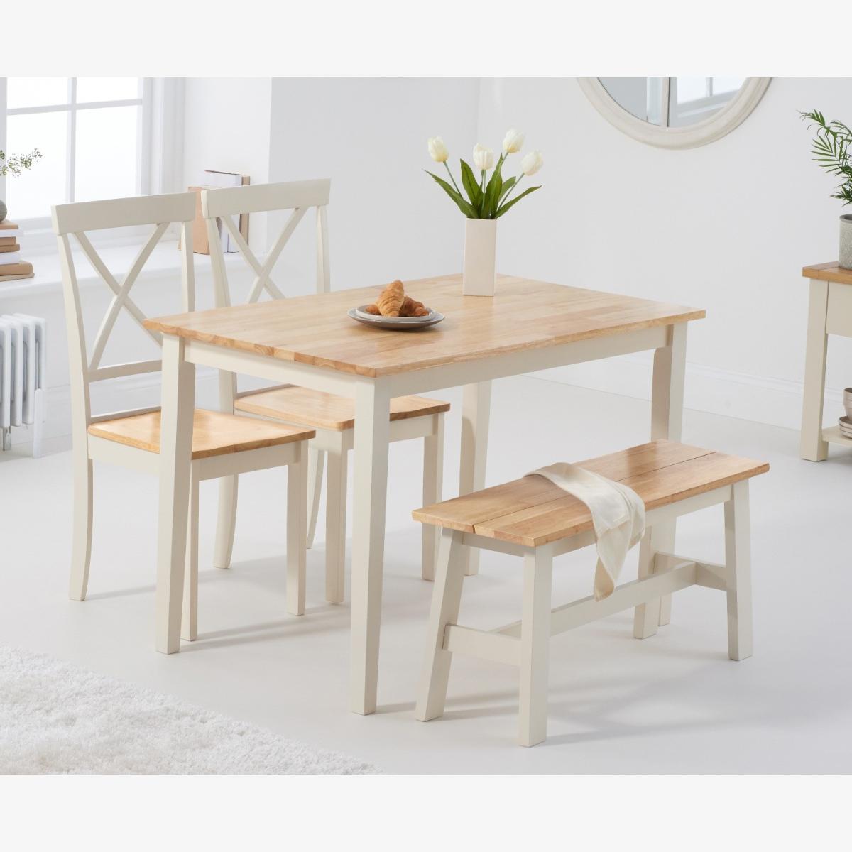 Chiltern 114cm Oak and Cream Painted Table With 2 Cream Epsom Chairs and 2 Oak and Cream Chiltern Benches