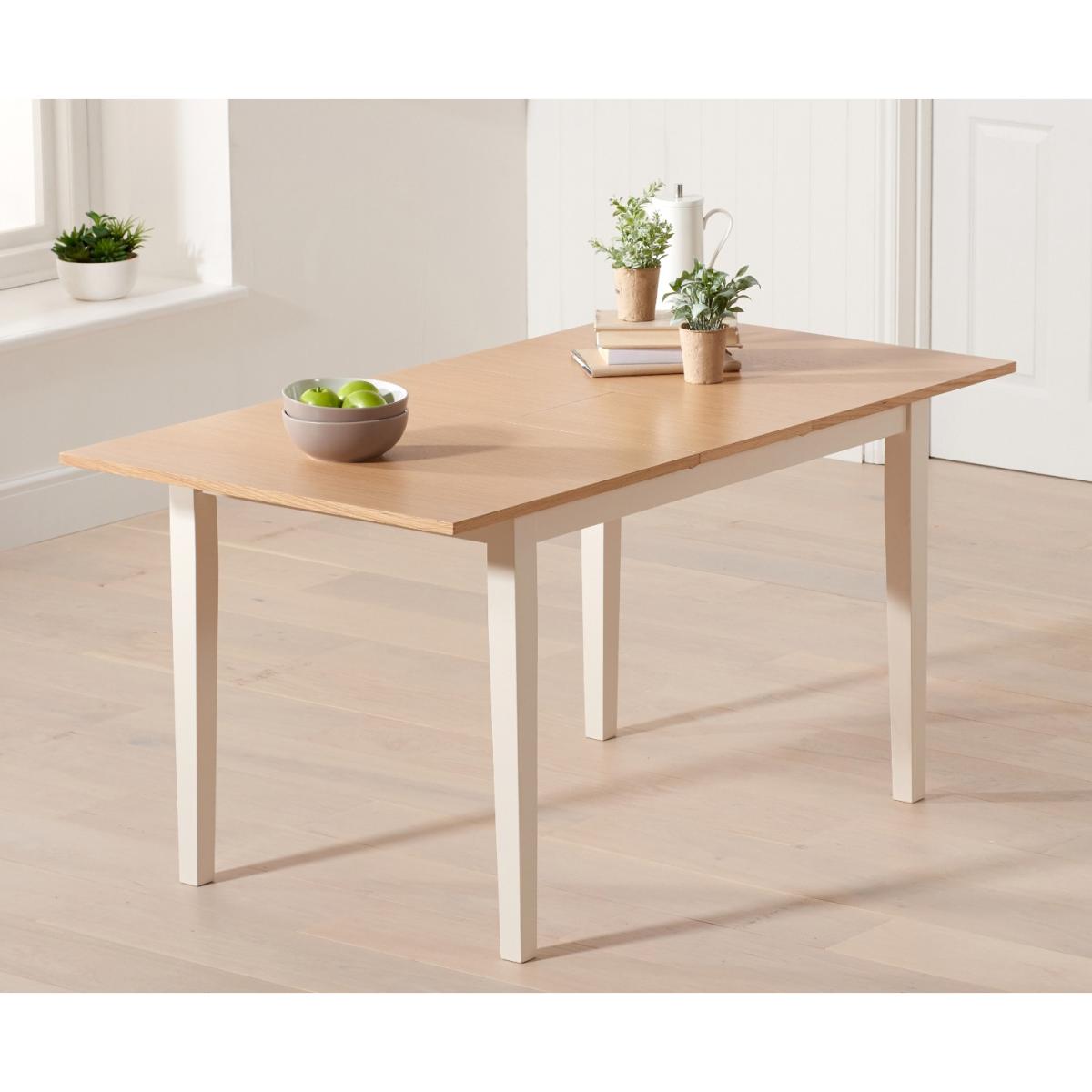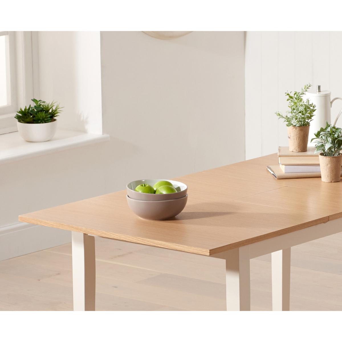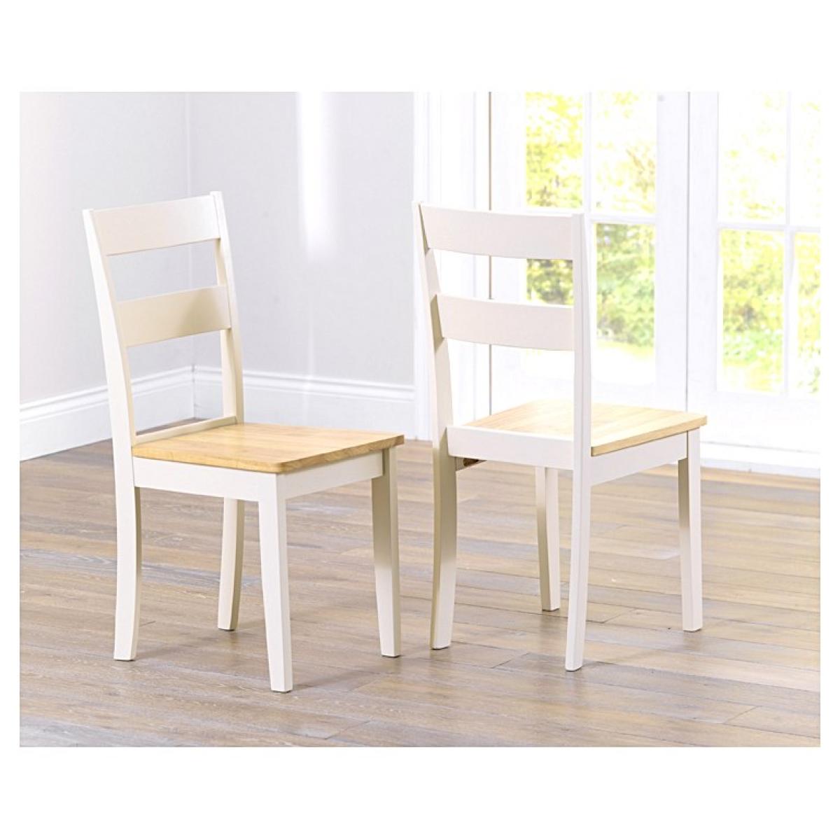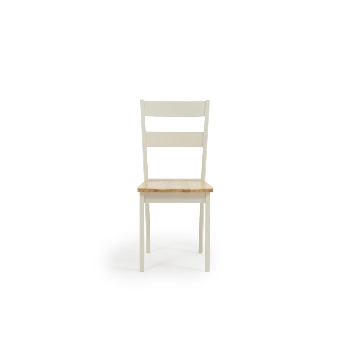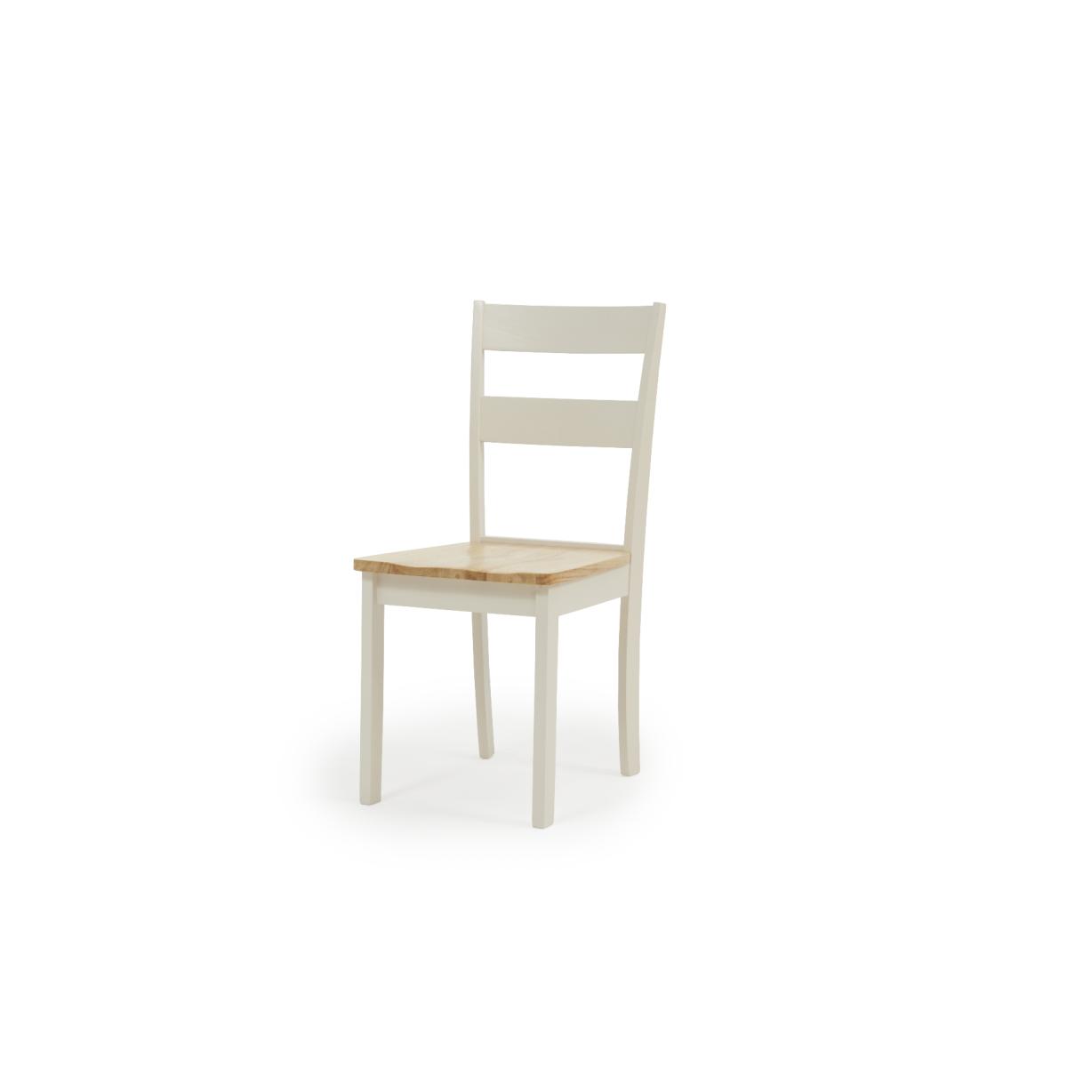 Chic and versatile, the Chiltern 120cm Oak and Cream Extending Dining Table is an asset for your dining room or kitchen. Seating up to 4 people, the painted dining table adapts to suit you as it extends to seat 6. Meticulously crafted from naturally resilient solid hardwood, the extending dining table features a smooth oak effect table top and a durable cream painted frame and legs. A stylish setting for any occasion, the painted dining table extends to 150cm via an inbuilt butterfly extension feature. Matching chairs complement the Chiltern table. Crafted from solid hardwood, the Chiltern chairs feature a laddered-backrest design and a cream painted finish that contrasts with a natural seat.