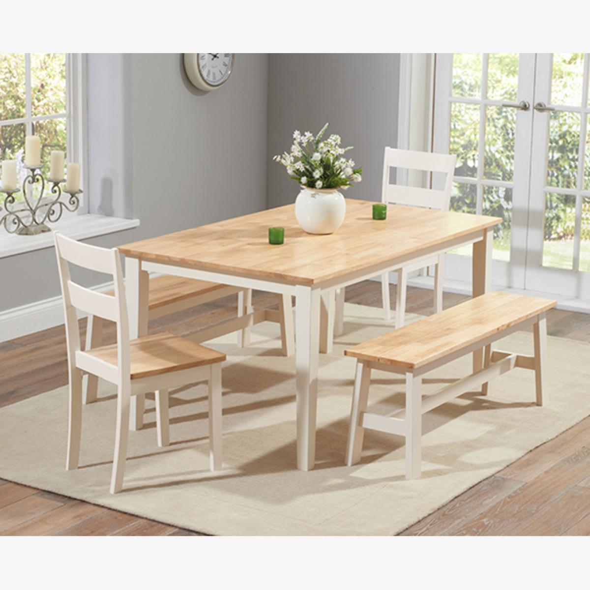 Chiltern 150cm Oak and Cream Painted Dining Set With 4 Cream Chiltern Chairs and 1 Oak and Cream Chiltern Benches