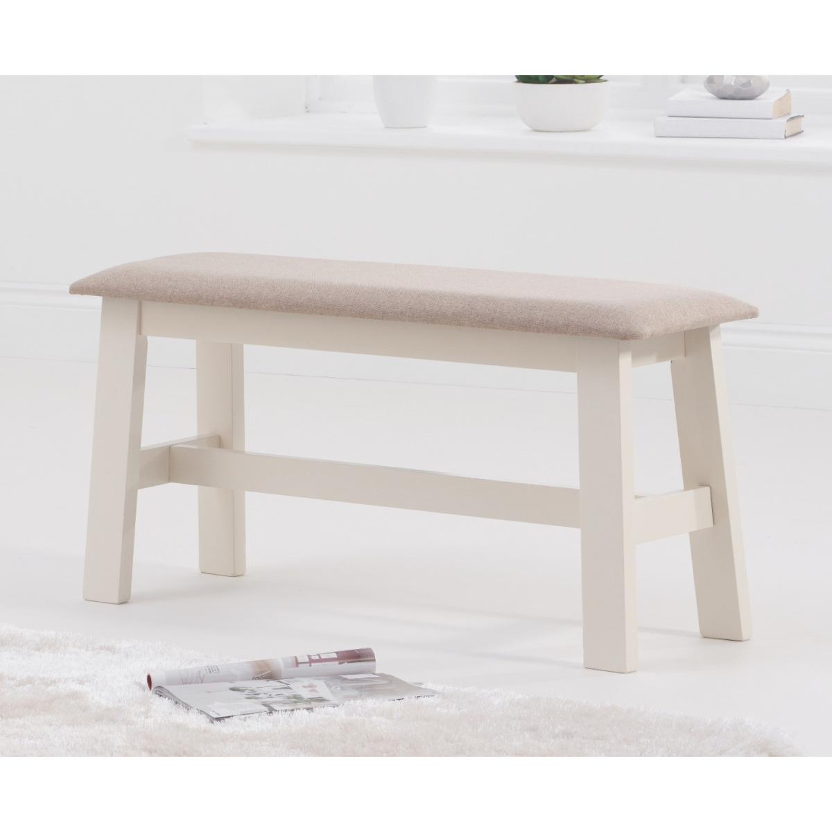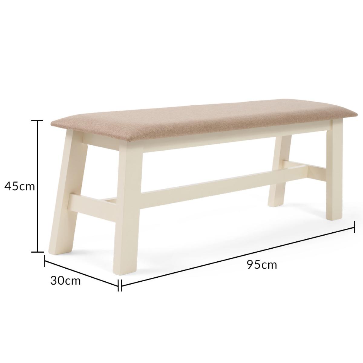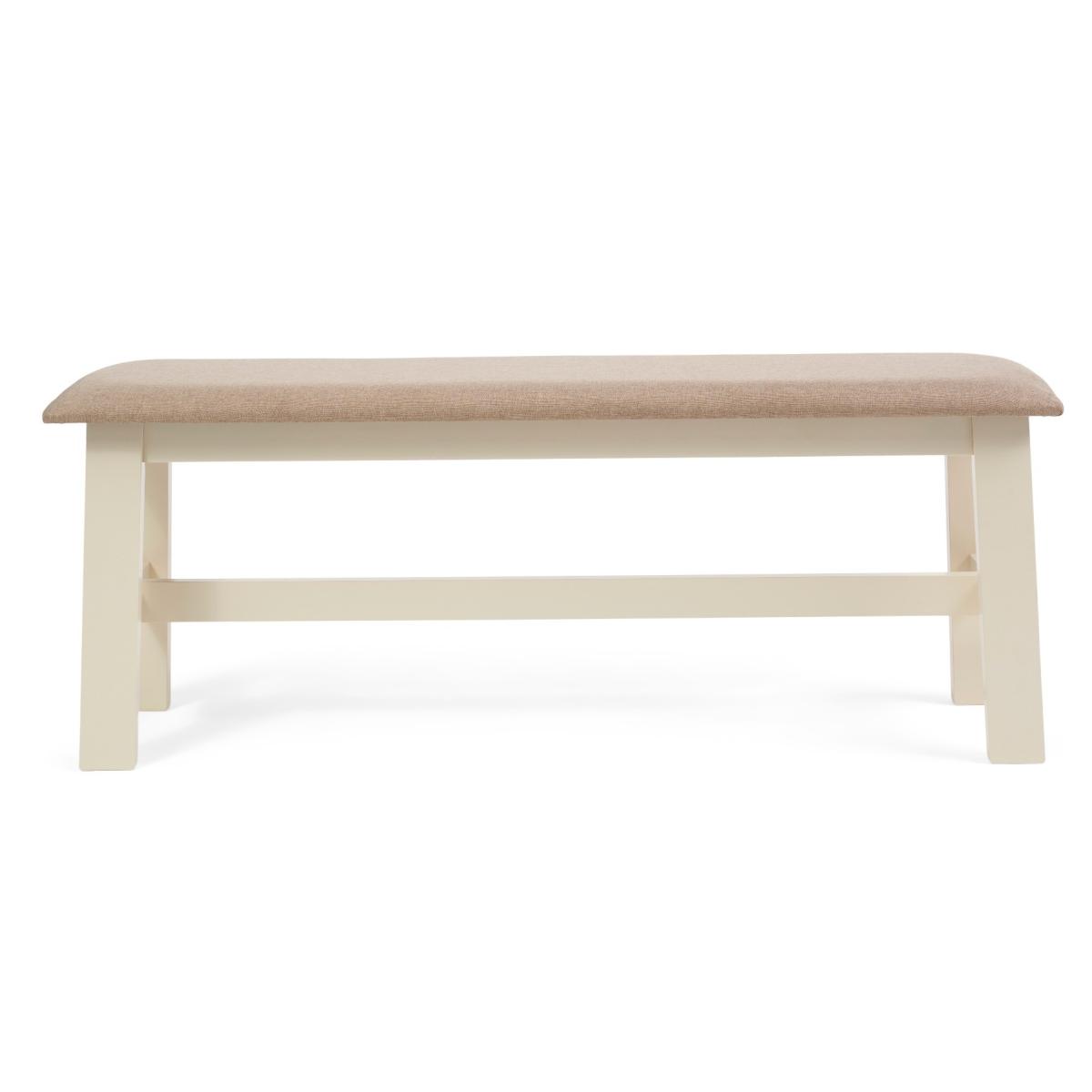 Crafted from durable solid hardwood, the Chiltern Cream Bench with Fabric Seat is a chic alternative to dining chairs. This stylish painted bench is complete with a comfortable cream fabric seat for the perfect finishing touch. Solid hardwood bench offers a stunning alternative to dining chairs. Compact and stylish with enough room to seat 2 diners. Cream painted finish on the frame for a classic country look to suit any interior Padded cream fabric seat pad for a comfortable sit