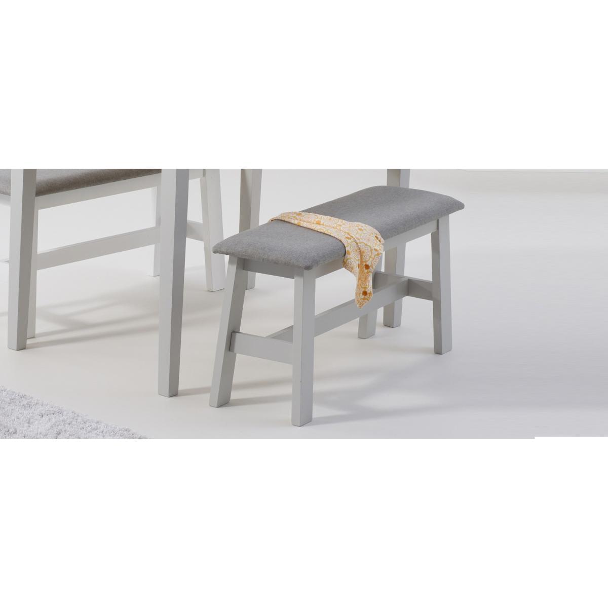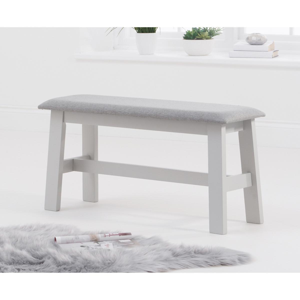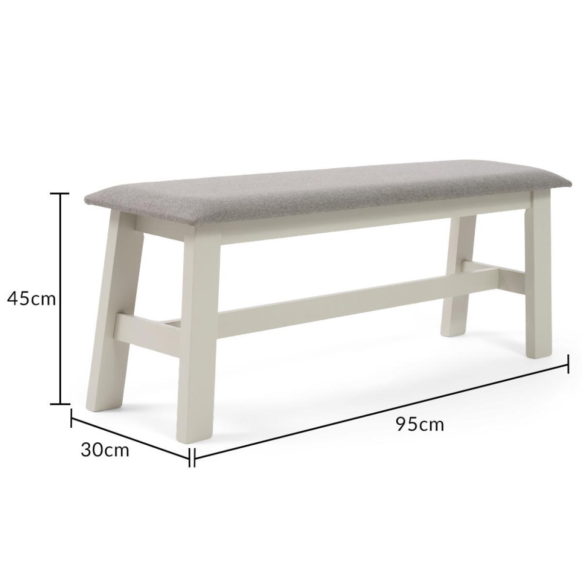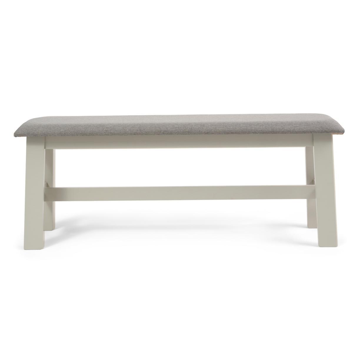 Crafted from durable solid hardwood, the Chiltern Grey Bench with Fabric Seat is a chic alternative to dining chairs. This stylish painted bench is complete with a comfortable grey fabric seat for the perfect finishing touch. Solid hardwood bench offers a stunning alternative to dining chairs. Compact and stylish with enough room to seat 2 diners. Grey painted finish on the frame for a classic country look to suit any interior Paddedgreyfabric seat pad for a comfortable sit