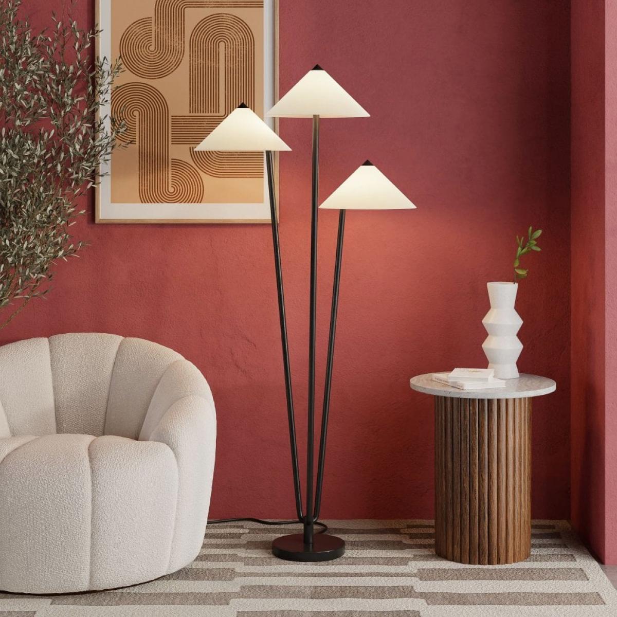 With three stems and cone light shades splayed outwards in an organic design, the Chilton Floor Lamp is Japandi style personified. The neutral palette and minimal design lives by the motto "less is more". The cone shades diffuse light downwards and outwards for a soft glow in living spaces, ideal for reading nooks.