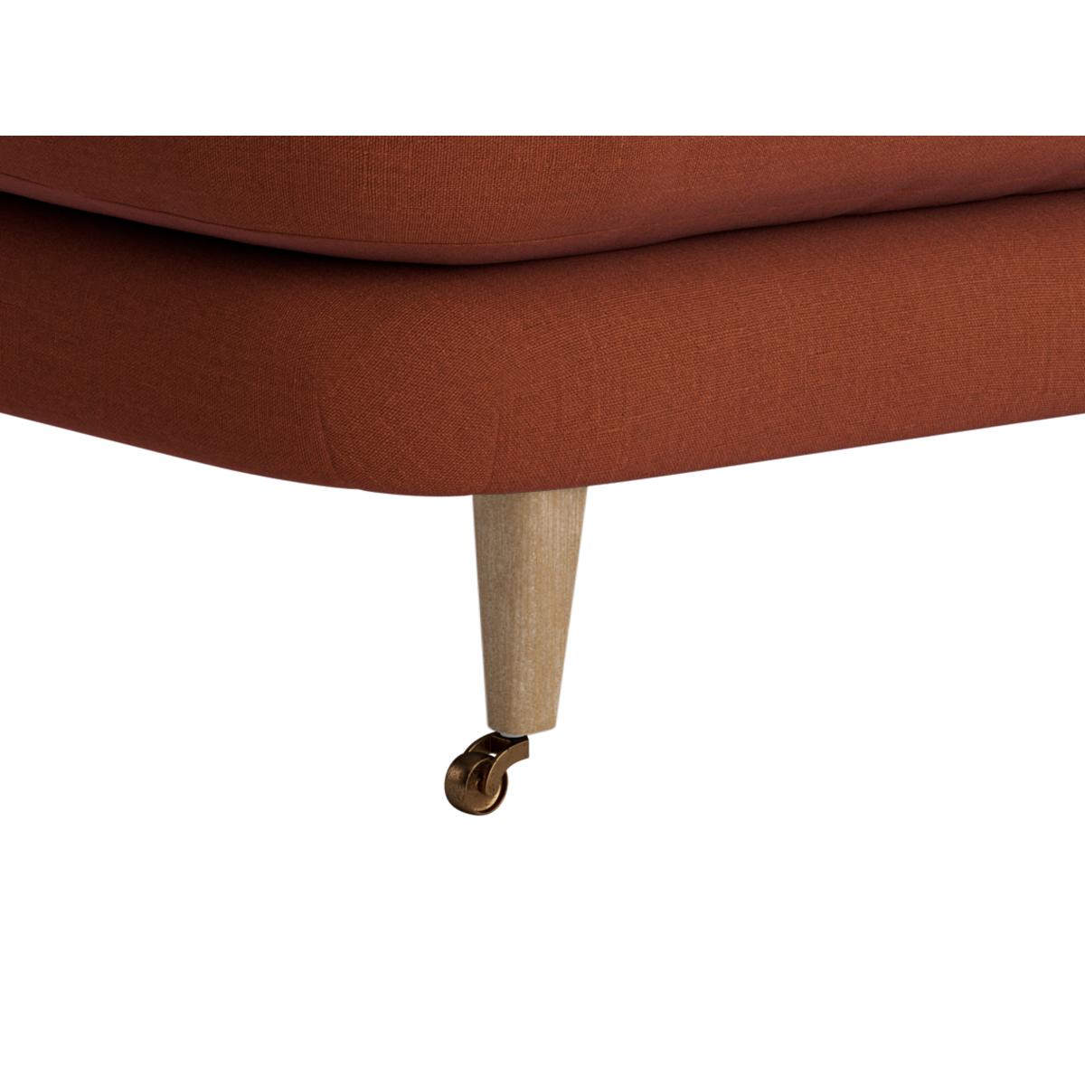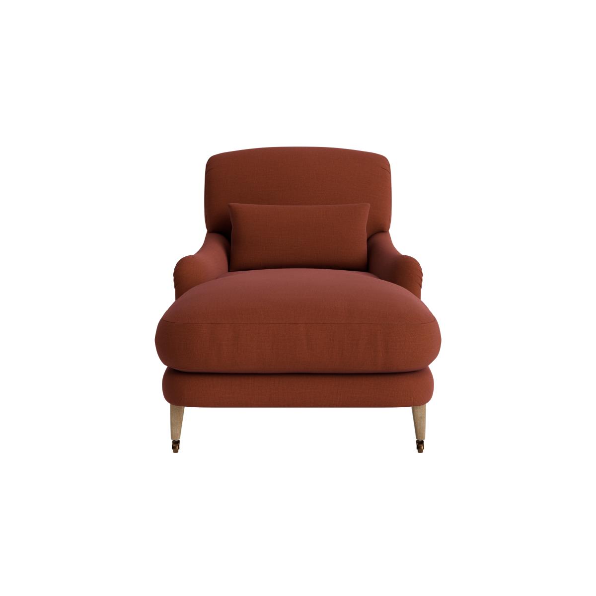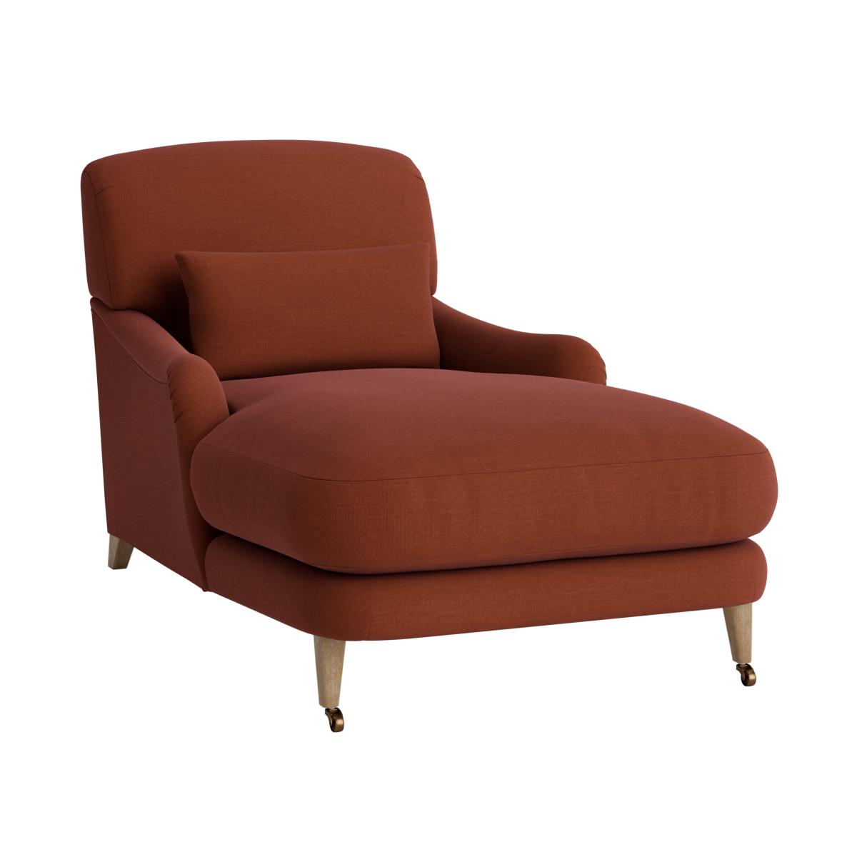 I love the Chin Chin armchair chaise for its inviting, contemporary silhouette that adds a relaxed yet sophisticated touch to any interior. It works particularly well in cosy corner schemes, modern lounges, or eclectic settings where its warm hue can serve as a colour anchor. Practical styling tips include pairing it with neutral cushions or textured throws to soften its look, and placing it near a statement side table or floor lamp to create a perfect reading nook. Its versatile design makes it easy to dress up with contrasting fabrics or layered with other seating for a welcoming, stylish arrangement.