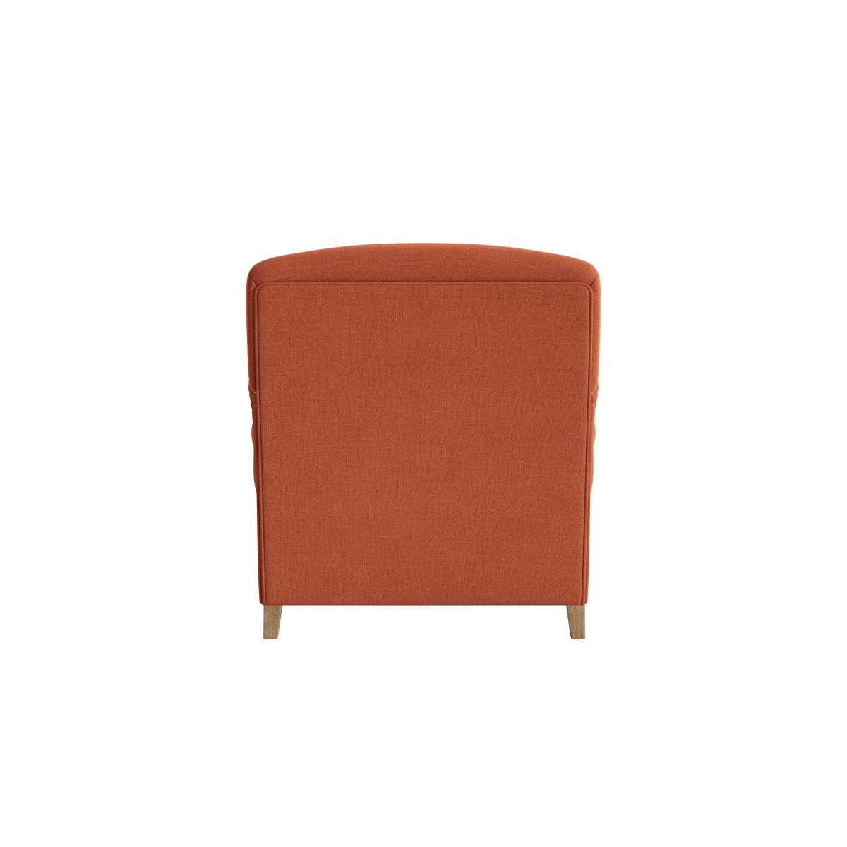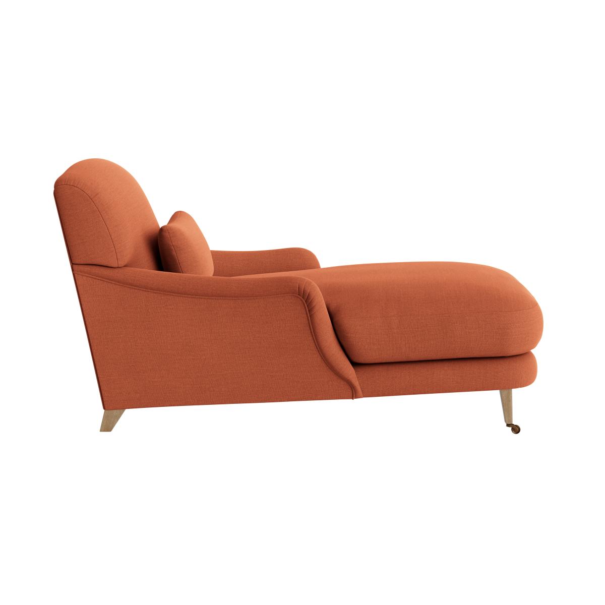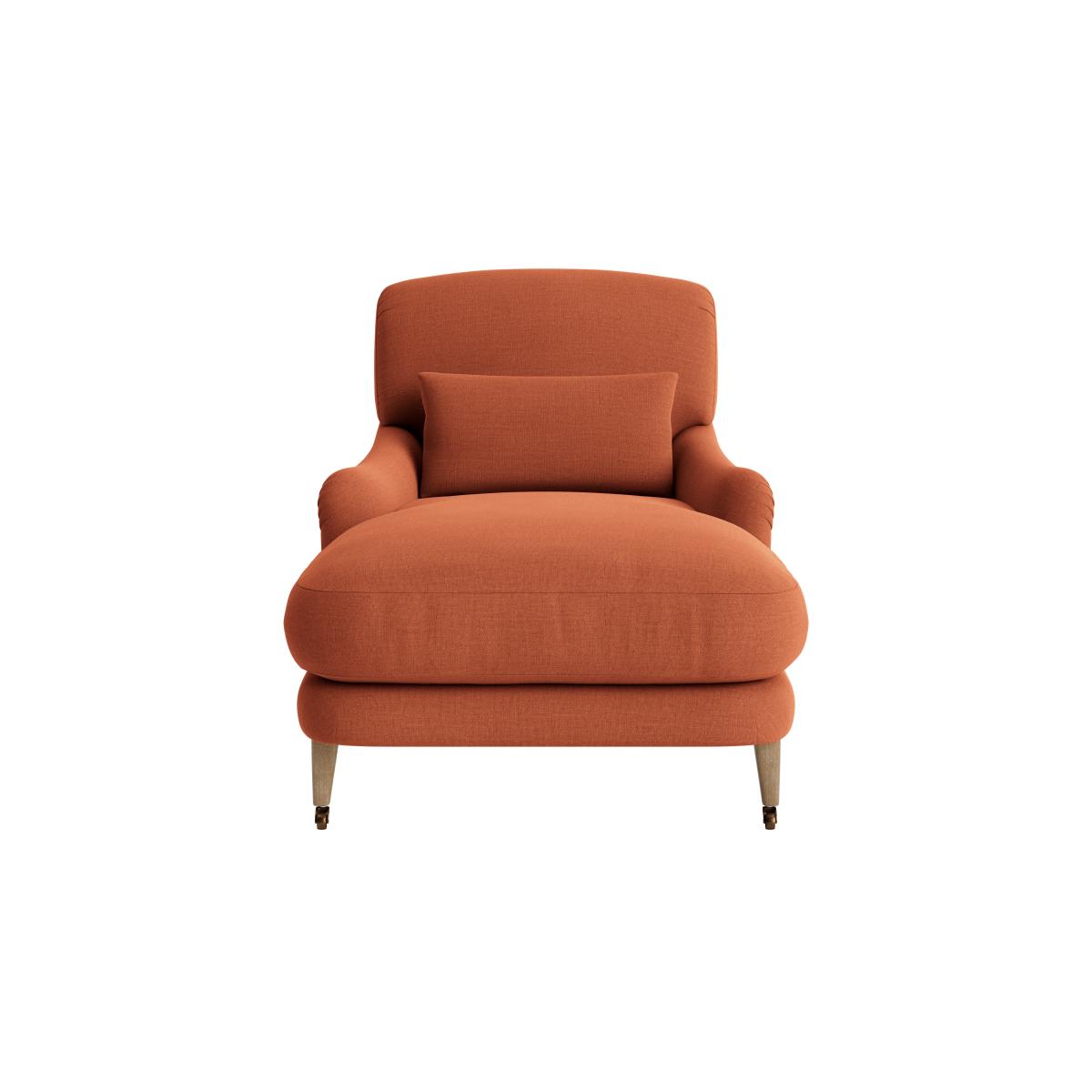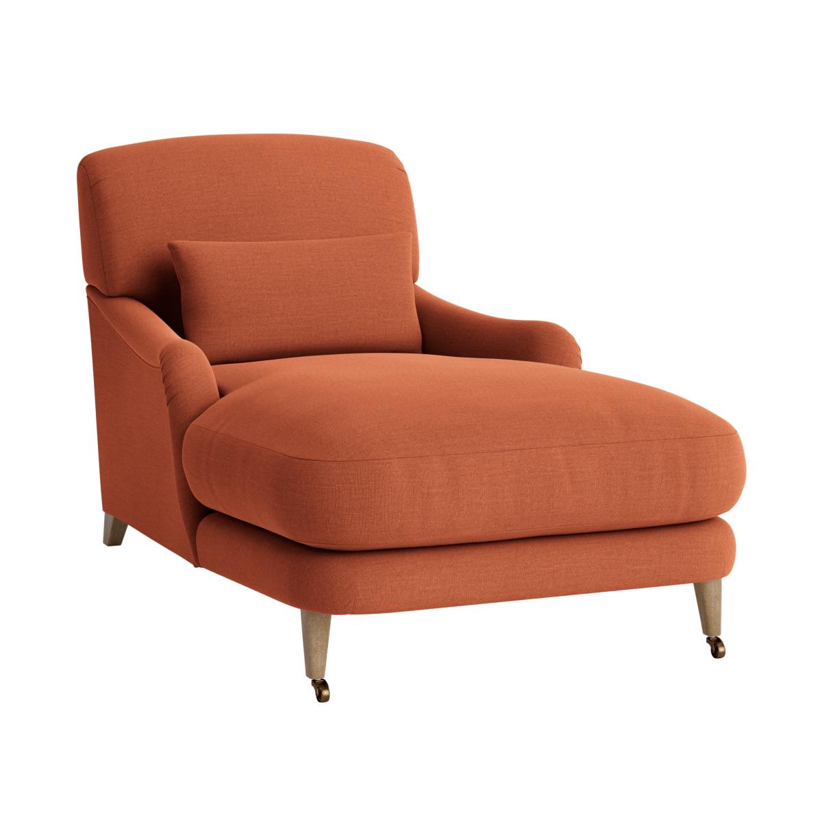 I love this armchair chaise for its inviting shape and versatile style, making it a great statement piece in both contemporary and retro-inspired interiors. Its warm terracotta hue pairs beautifully with neutral tones, natural woods, or even bold colours for an eclectic look. Practical styling tips include placing it near a window with cosy throws and cushions to create a relaxed reading nook, or pairing it with a sleek side table and a floor lamp for a functional yet stylish corner. Its compact size also makes it ideal for smaller living spaces or to soften a larger seating arrangement, providing both comfort and aesthetic appeal with minimal fuss.