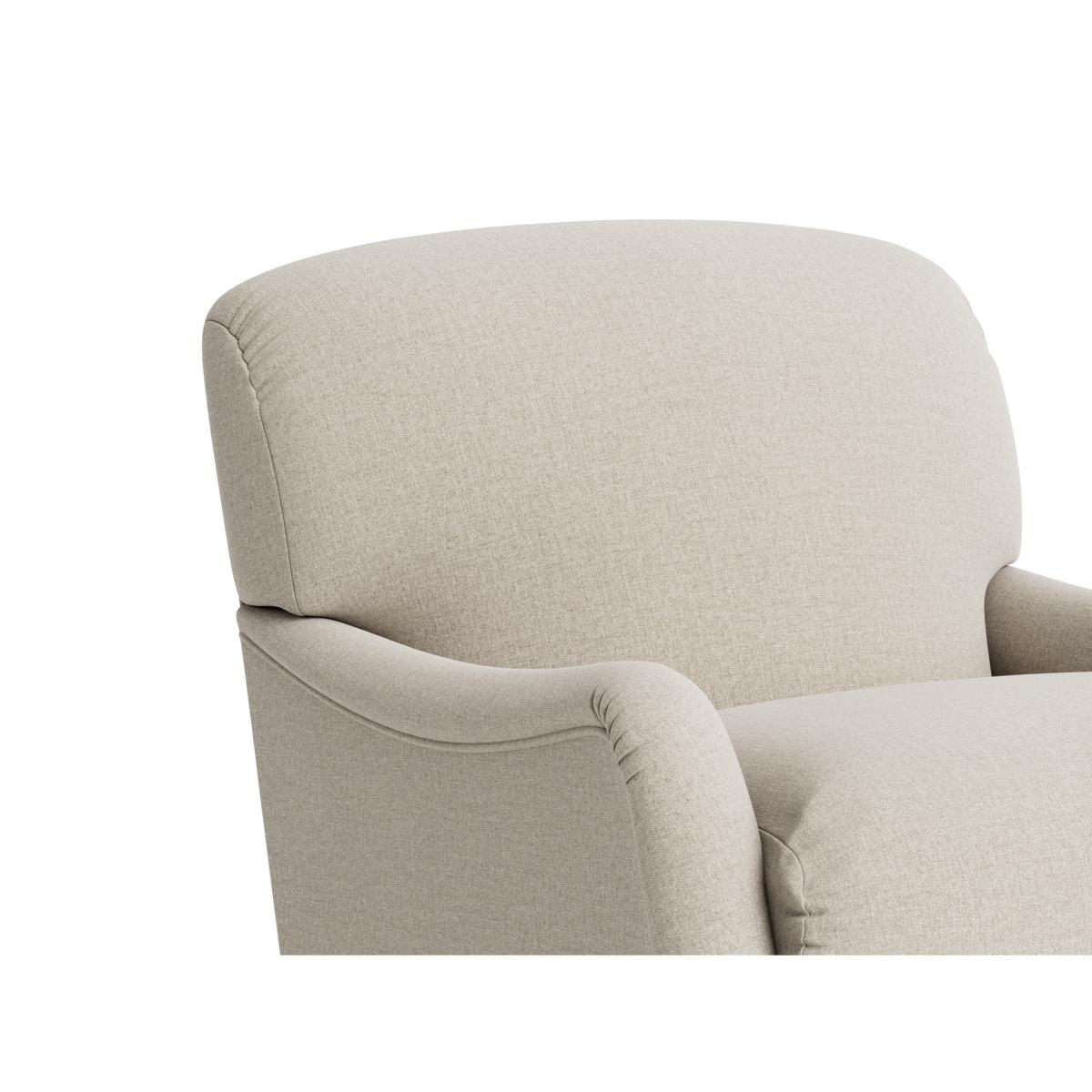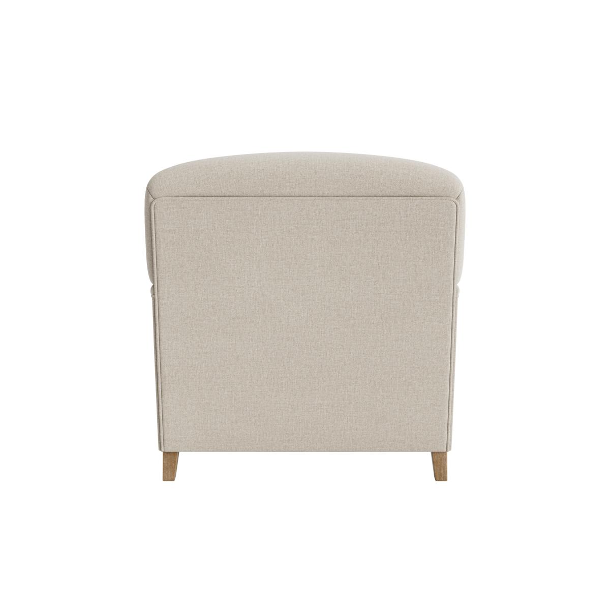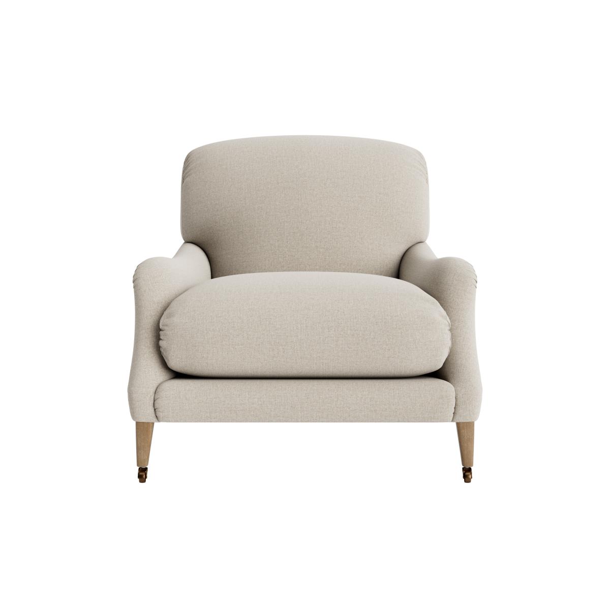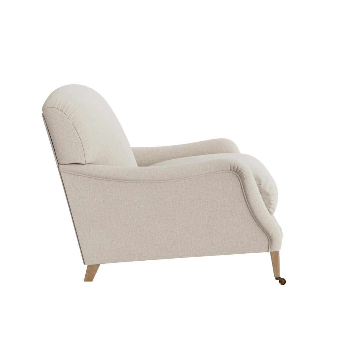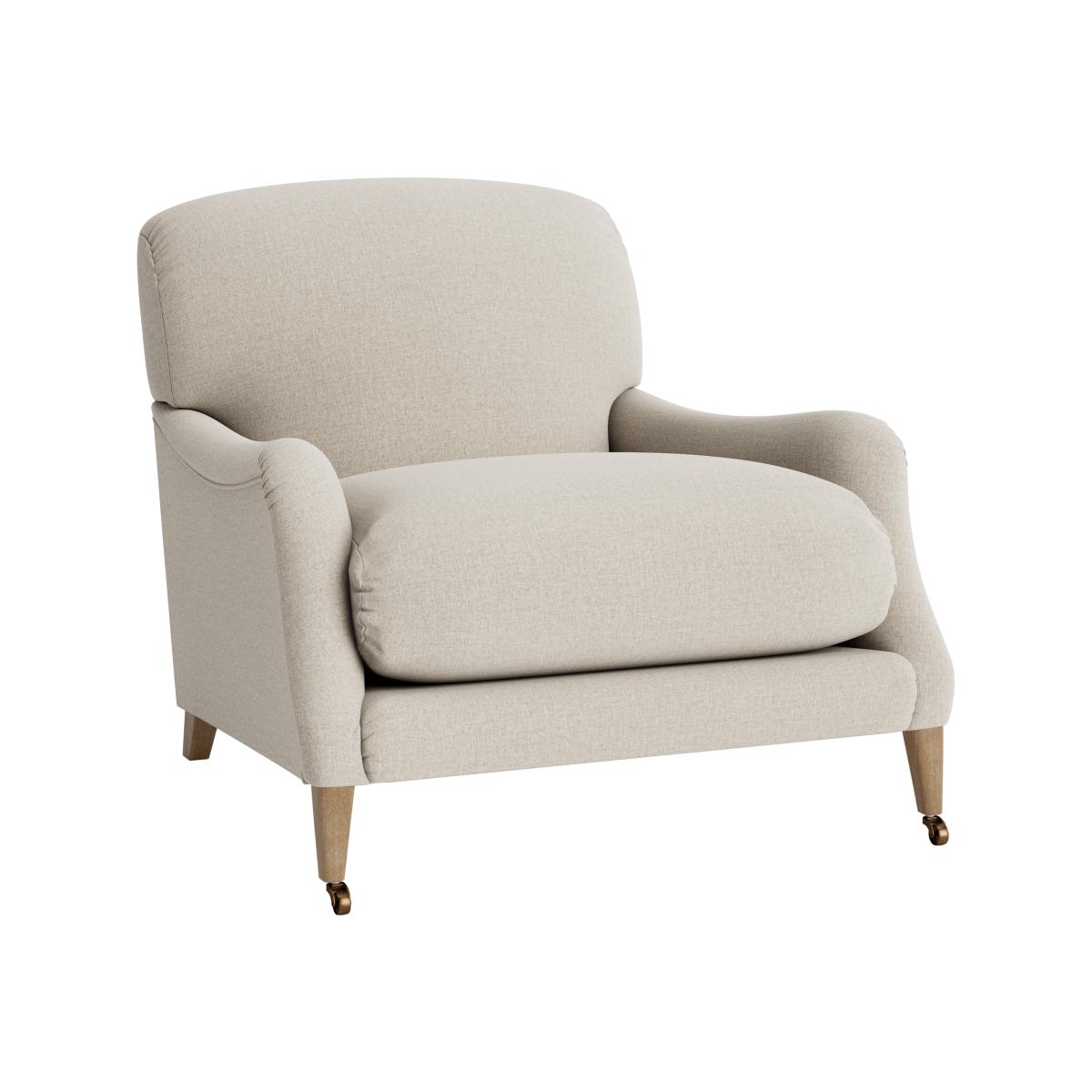 I love this armchair for its timeless, versatile style - it works equally well in classic or contemporary interiors. Its neutral fabric makes it a great anchor piece that can be easily dressed up with colourful cushions or throws. The slightly curved arms and supportive back also make it comfortable for everyday use. Style it in a living room to create a cosy reading nook or place a pair in a bedroom corner for a practical yet charming seating option. To keep it looking fresh, consider pairing it with contrasting textures like a plush rug or metallic accessories for added visual interest.