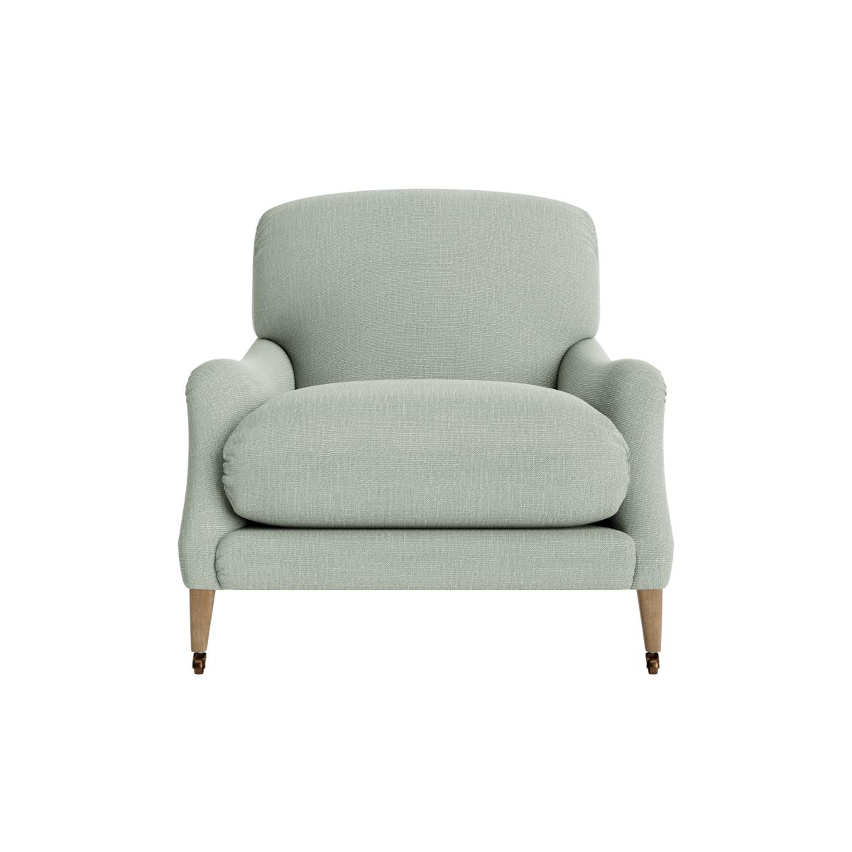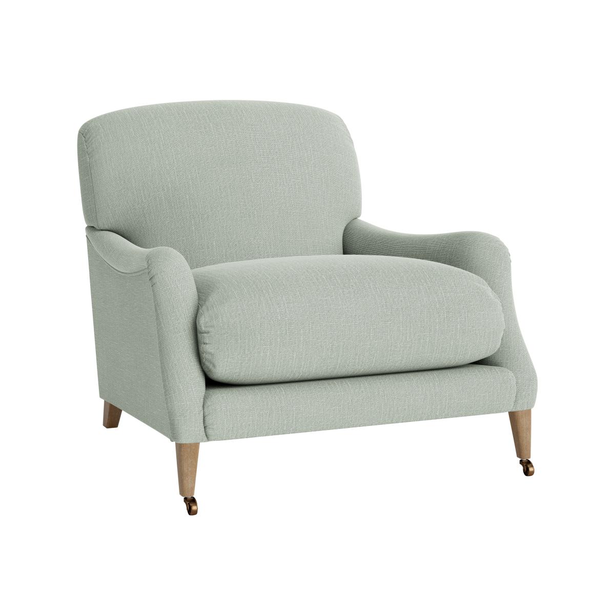 I love this armchair for its timeless, classic silhouette combined with a fresh, soft tone that can brighten up a variety of interiors. It works particularly well in cosy living rooms, reading nooks, or even a bedroom corner, bringing both comfort and style. To style it effectively, consider adding textured cushions or a throw to create visual interest and make it more inviting. It's versatile enough to complement mid-century modern, Scandinavian, or shabby chic schemes, and its neutral hue allows for easy pairing with colourful or patterned accessories. Practical tip: pair it with a small side table and a floor lamp for a perfect spot to unwind.