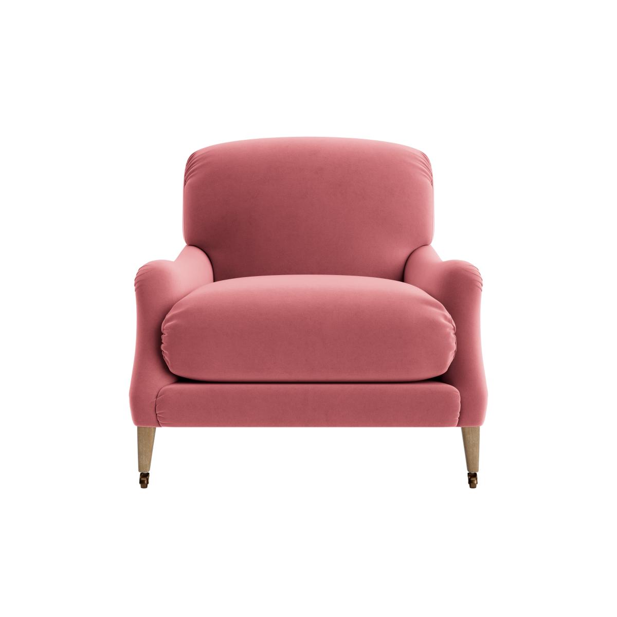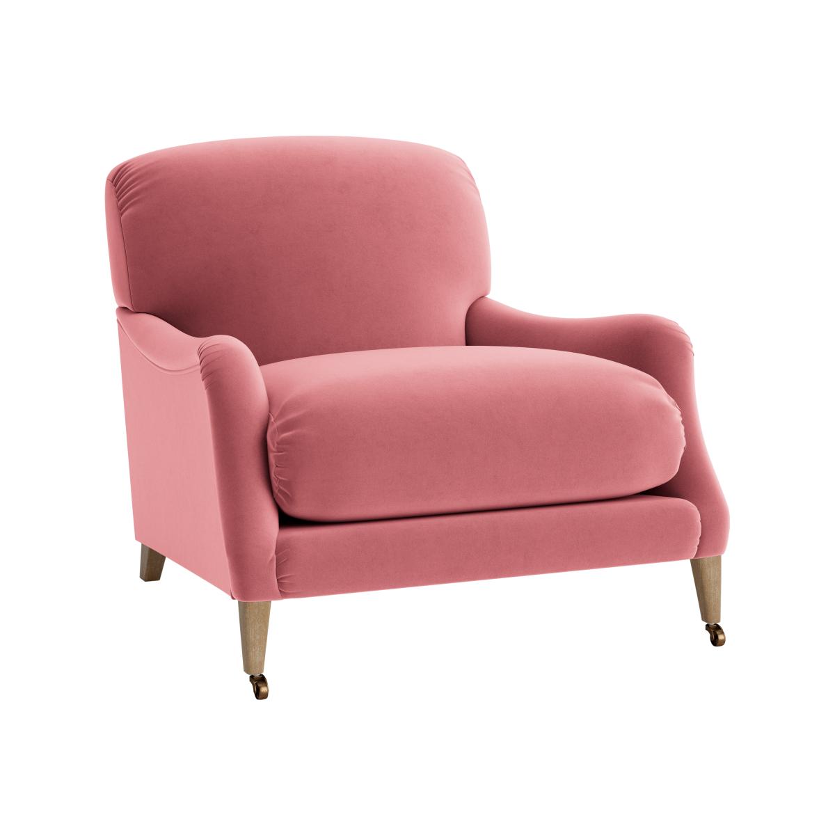 I love this armchair for its playful yet sophisticated shape, and the soft pink hue makes it a versatile statement piece. It works well in both contemporary and vintage-inspired interiors, adding a pop of colour without overpowering. To style it effectively, consider pairing it with neutral or muted-toned accessories to keep the look balanced, or contrast it with bold patterns for a more eclectic vibe. Practical tips include placing it in a cosy corner with a small side table for reading, or as an accent piece in a living room to add character. Its compact size makes it ideal for smaller spaces or as an additional seat in larger rooms.