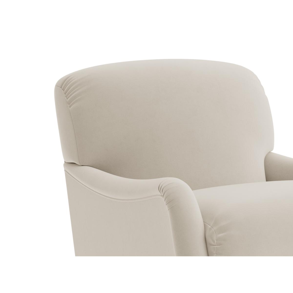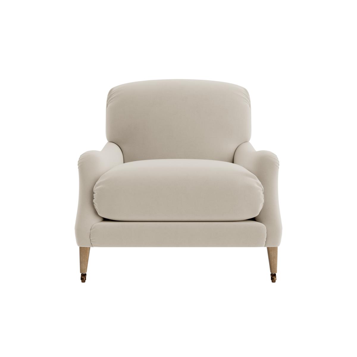 I love this armchair because of its timeless appeal and versatile style, making it perfect for both classic and contemporary interiors. Its soft curves and neutral tone mean it works well in living rooms, bedrooms, or even cosy reading nooks. When styling, consider pairing it with textured cushions or a small side table to make it inviting. It also pairs beautifully with statement rugs and layered lighting, creating a comfortable and stylish corner. For practical tips, use it as a focal point with contrast cushions or consider a slipcover to keep it looking fresh, especially if it’s in a high-traffic area.