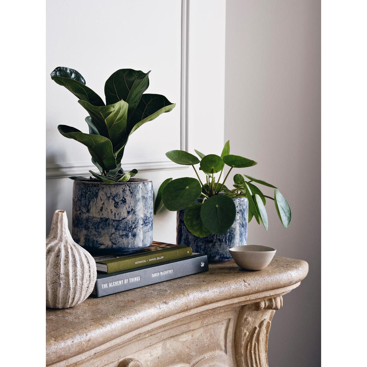 I love this faux plant and pot combo for adding a touch of greenery to spaces where natural light is limited or low-maintenance options are preferred. The Chinese Money Plant’s bold, rounded leaves bring a contemporary yet effortless vibe, while the fractured blue pot offers a stylish pop of colour and texture that complements both modern and eclectic interiors. It works particularly well on consoles, shelves, or sideboards, adding visual interest without overwhelming the space. Practical styling tips include grouping it with other colour-coordinated accessories or keeping it as a statement piece on its own. Its durability makes it ideal for busy households or environments where real plants might struggle to thrive.