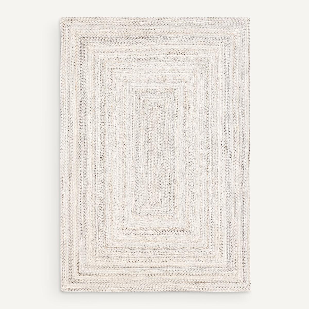 The Chini rug is woven by hand in India, by local craftsmen with recognised know-how. Made from recycled polyester, it is suitable for indoor and outdoor use. With its neutral colours, a mix of grey, ivory and neutral tones, it fits in the garden, on the terrace and in any room of the house.. An AMPM exclusive. Product Details • Made of PET recycled polyester • Craftsmanship: Hand woven • Weight: 2000g/m2 Dimensions • Width 120 x Length 180cm • Width 160 x Length 230cm • Width 200 x Length 290cm. Home delivery:Available for home delivery. • Recycled polyester. Using recycled polyester is all about conserving resources and reducing waste.