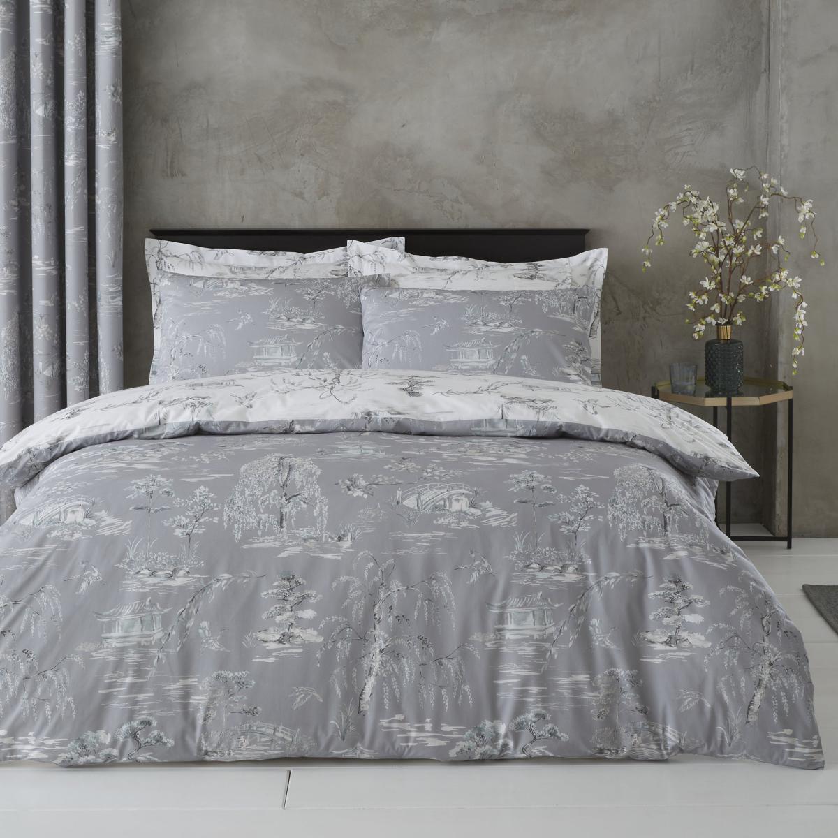 Chinoiserie Grey Reversible Duvet Cover and Pillowcase Set Grey
