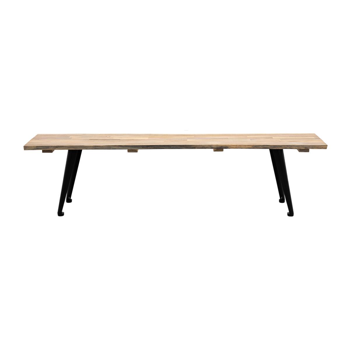 This dining bench is the ultimate conversation starter. If you're hosting guests or having a relaxed meal, this dining bench featuring an acacia wood seat with industrial style metal legs, is the perfect piece for al fresco dining.