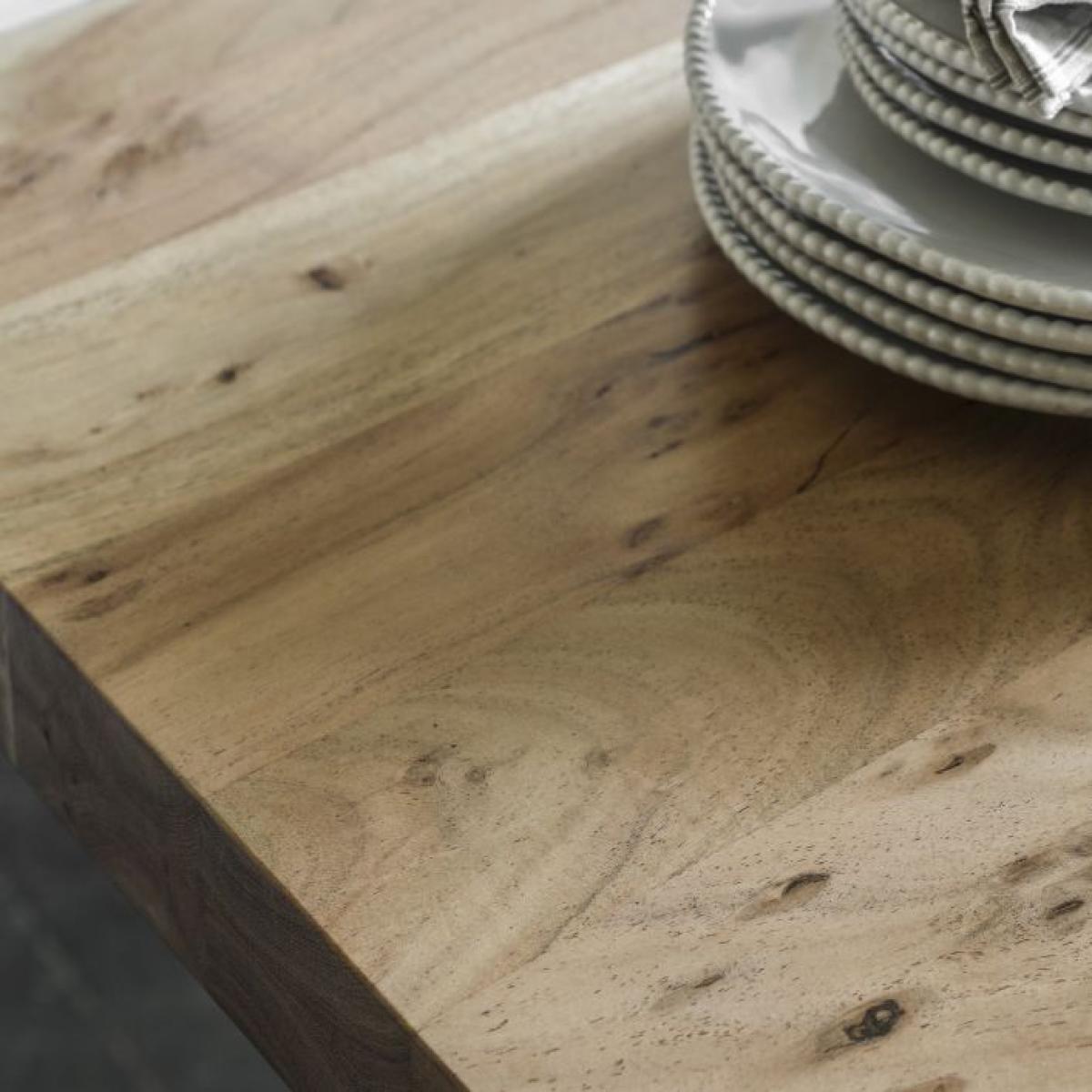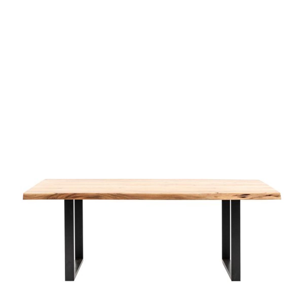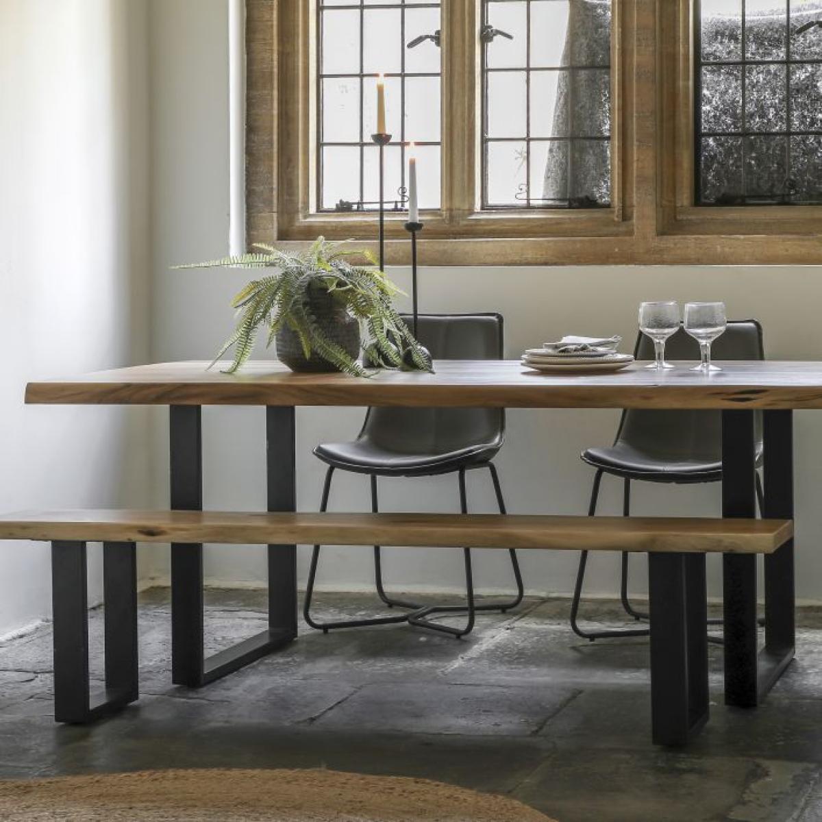 This lovely dining table features a solid acacia top with a live edge, paired with a black metal ‘U’ shaped underframe which gives a modern semi-industrial look, ideal for any eclectic interior. It looks perfect paired with the matching dining bench. A larger table is also available.