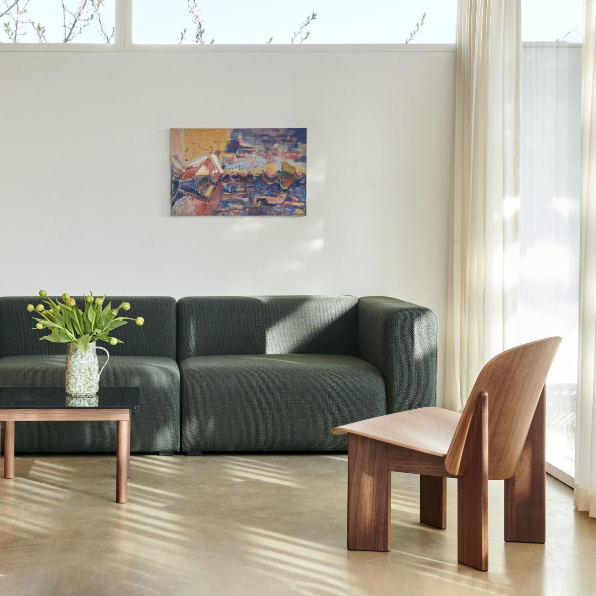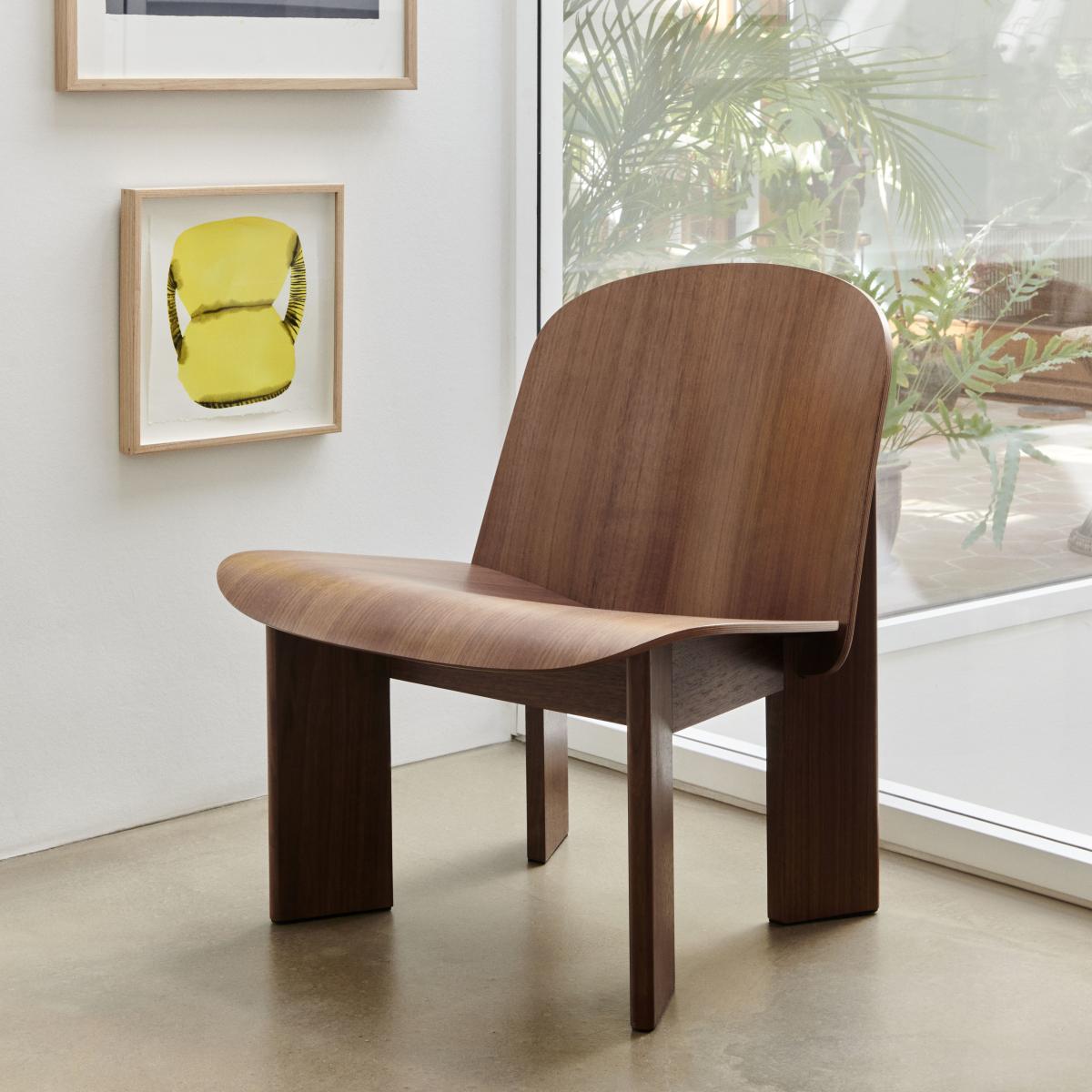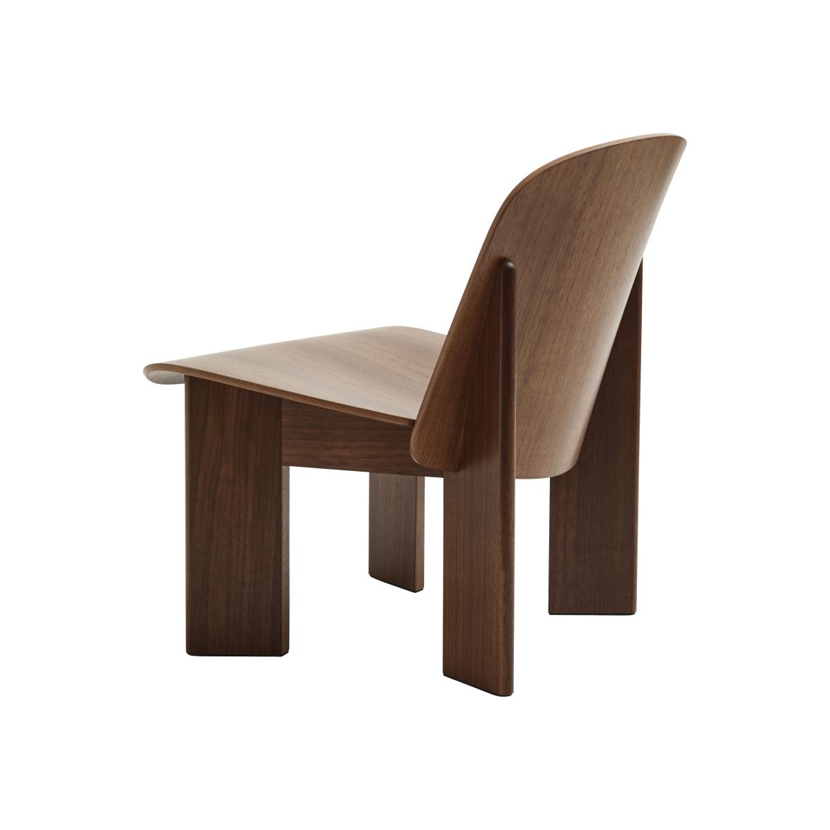 This wooden armchair with its solid lines and distinctive silhouette is the creation of Norwegian designer Andreas Bergsaker. The Chisel armchair refers to a carpentry tool both by its name and its shape, characterised by its generously sized bevelled wooden legs. The large curved plywood shell features fluid, enveloping shapes. Chisel appeals due to the perfection of its lines. The Chisel armchair was born from the desire to design an elegant wooden seat that stands the test of time. It offers excellent comfort while being compact and visually appealing. The Chisel armchair can be widely personalised by playing with wood species and coverings. It's a versatile lounge chair, which can easily fit into most private and public contexts – living rooms, bedrooms, waiting rooms, entrance halls, libraries, etc.