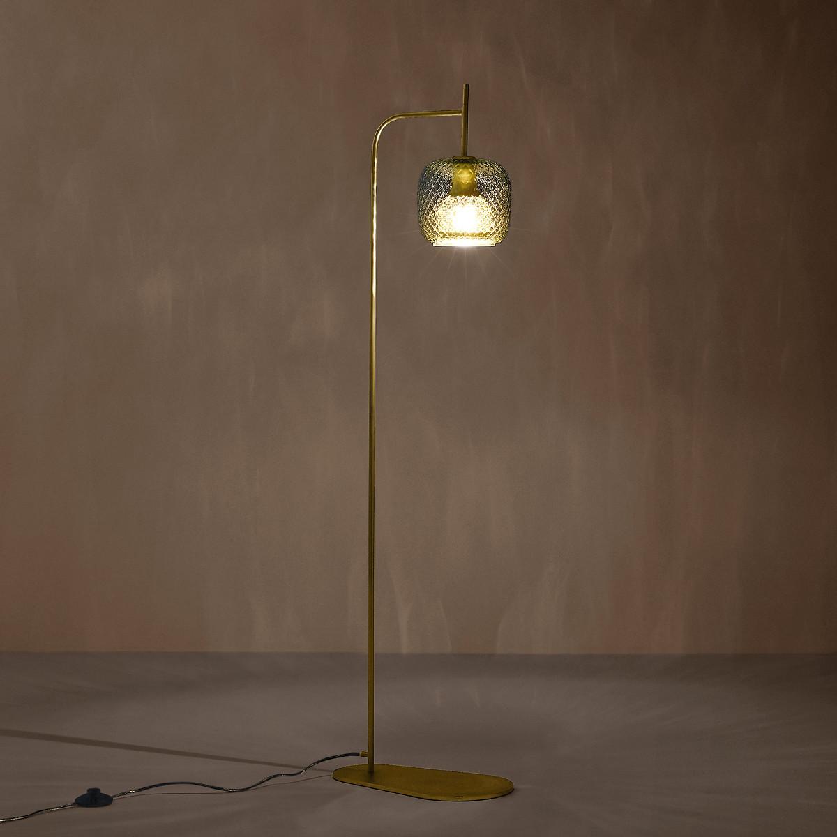 Play with light. An iconic and essential reader lamp anchored in the brand's DNA. An Emmanuel Gallina exclusive for AMPM. More than a light fixture, Mistinguett reflects an art of living. The association of brushed brass with chiselled glass is inspired by the Art Deco movement where the elegance of the line underlined the nobility of the materials. The perforated metal diffuser combined with the glass globe produce a light with soft and diffused notes. An iconic ceiling light anchored in the brand's DNA.Product Details • Perforated metal diffuser, chiselled glass globe • Structure in brass-coloured metal • E14 socket, suitable for 40W bulb (not included)Dimensions • Total Height: 140cm • Globe: Diameter 18cm • Base: L39.2 x D21cm • Weight: 5.5kg. Home Delivery. Your lamp will be delivered to your door!Note! Please check that all access points are large enough to accommodate your delivery (doors, stairs, lifts).Dimensions and weight of parcel • L152 x H33 x D58cm • 11.8kg