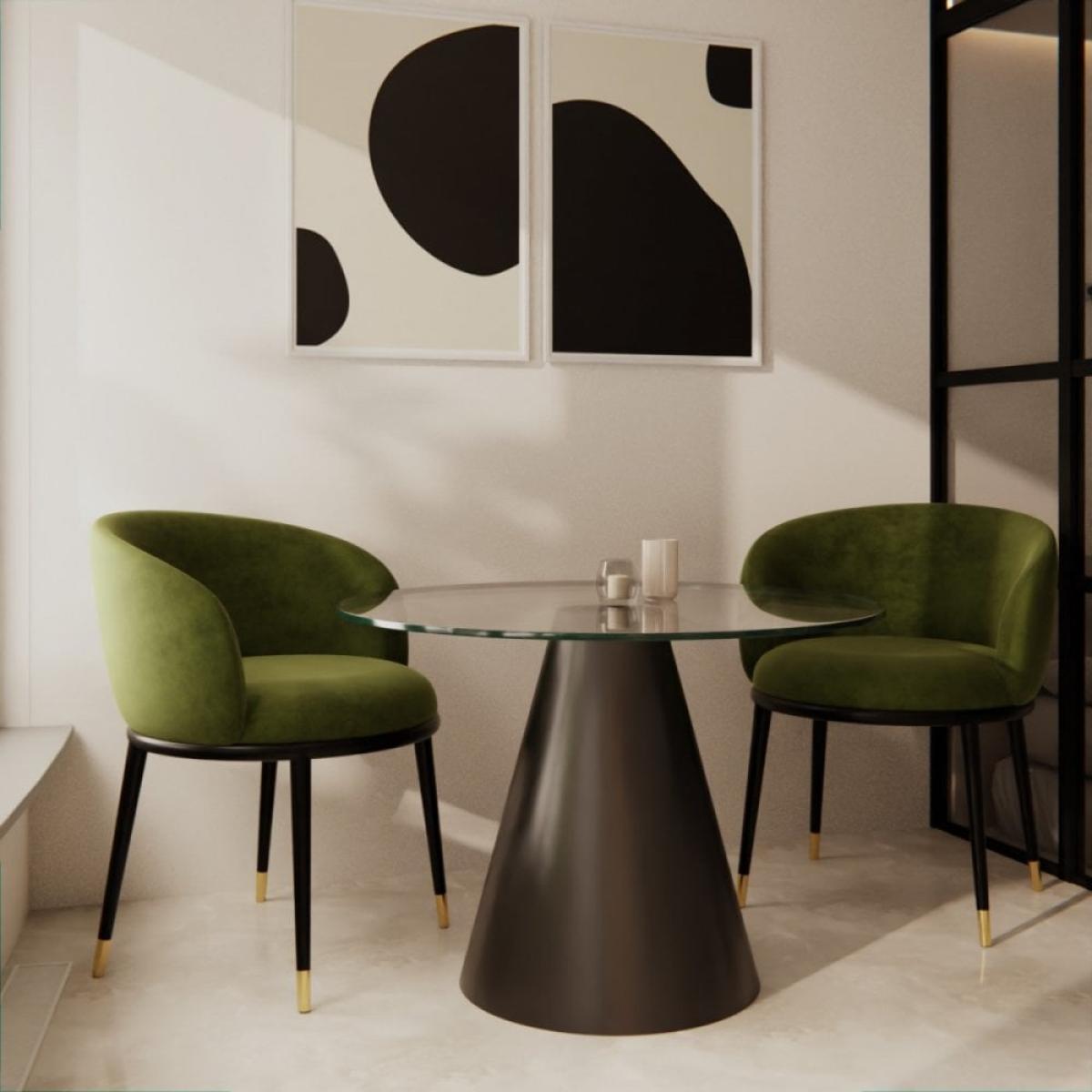 Add flair to your space with the Chiswick dining table for 4. This sculptural piece of furniture features an eye-catching brass metal base, topped off with a luxurious rounded, glass tabletop - infusing contemporary with classically inspired interiors and building a contrast that you and your guests will admire throughout the day. Available in two sizes with a variation of marble and metal finishes to choose from, our Chiswick round dining table makes a perfect stylish addition to any kitchen or cafe while creating the ultimate dining experience when teamed with dining chairs and pendant lights of your choice.