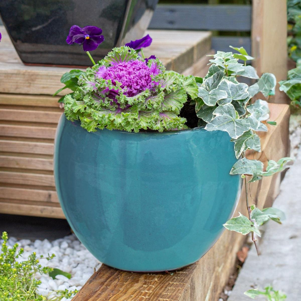This classic green glazed 25cm terracotta plant pot is a perfect feature piece for any garden, the lustre of the glaze reflects and brings light into the surrounding area.