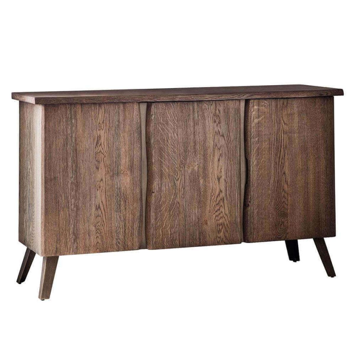 Nothing quite beats solid oak; the look and the feel truly enhance any style of home. The Chiswick Oak sideboard has a solid oak top and hand brushed metal legs. The legs areslightly angled outwards adding a touch of style to this piece. With three doors and one continuous shelf inside, this sideboard is not only useful, but a statement piece of furniture.
