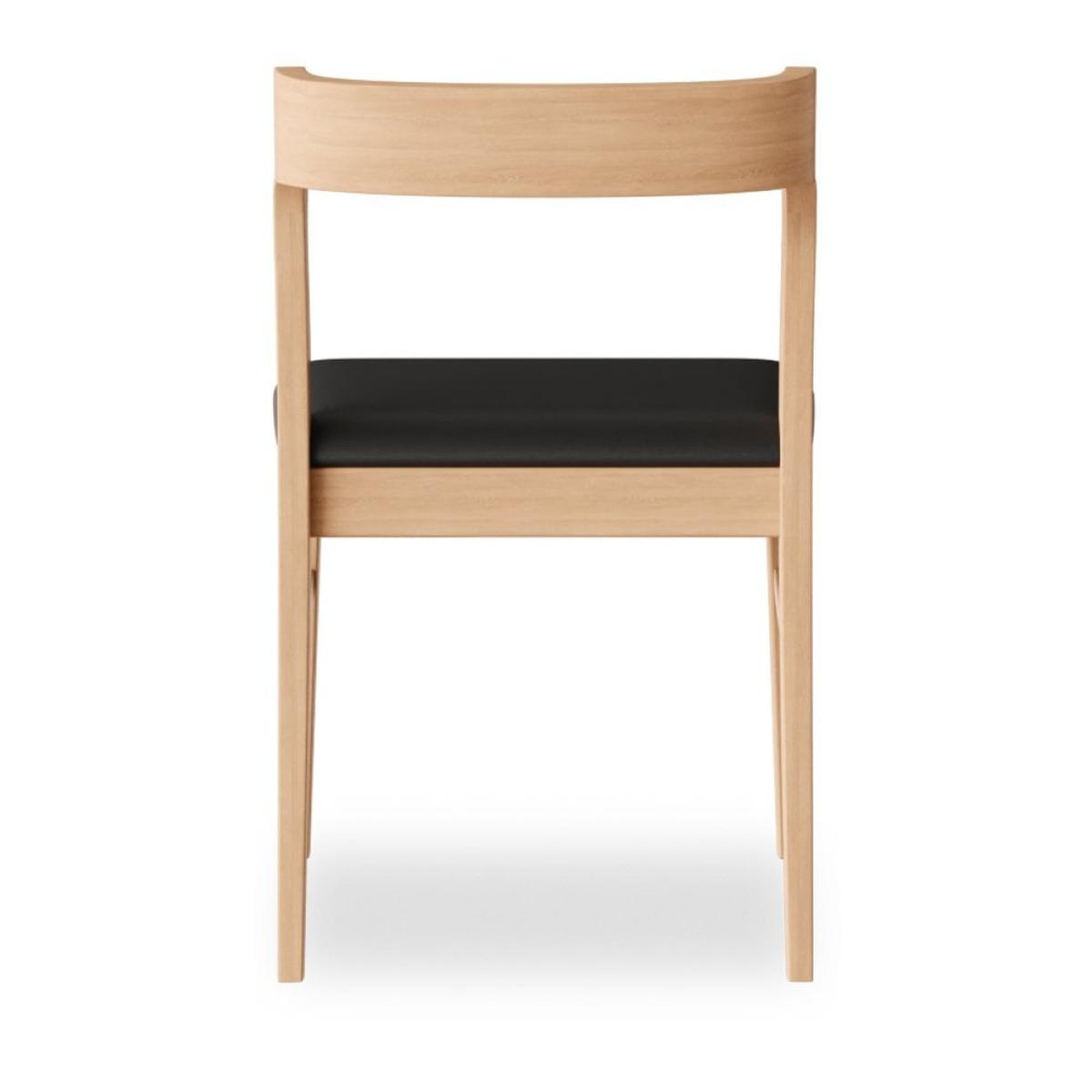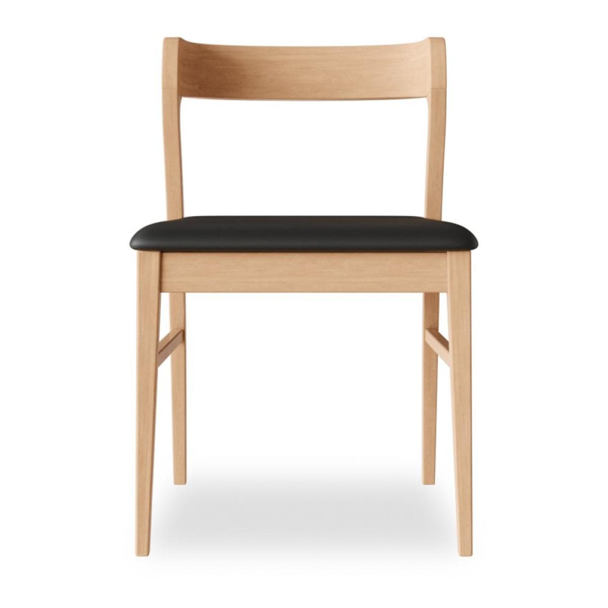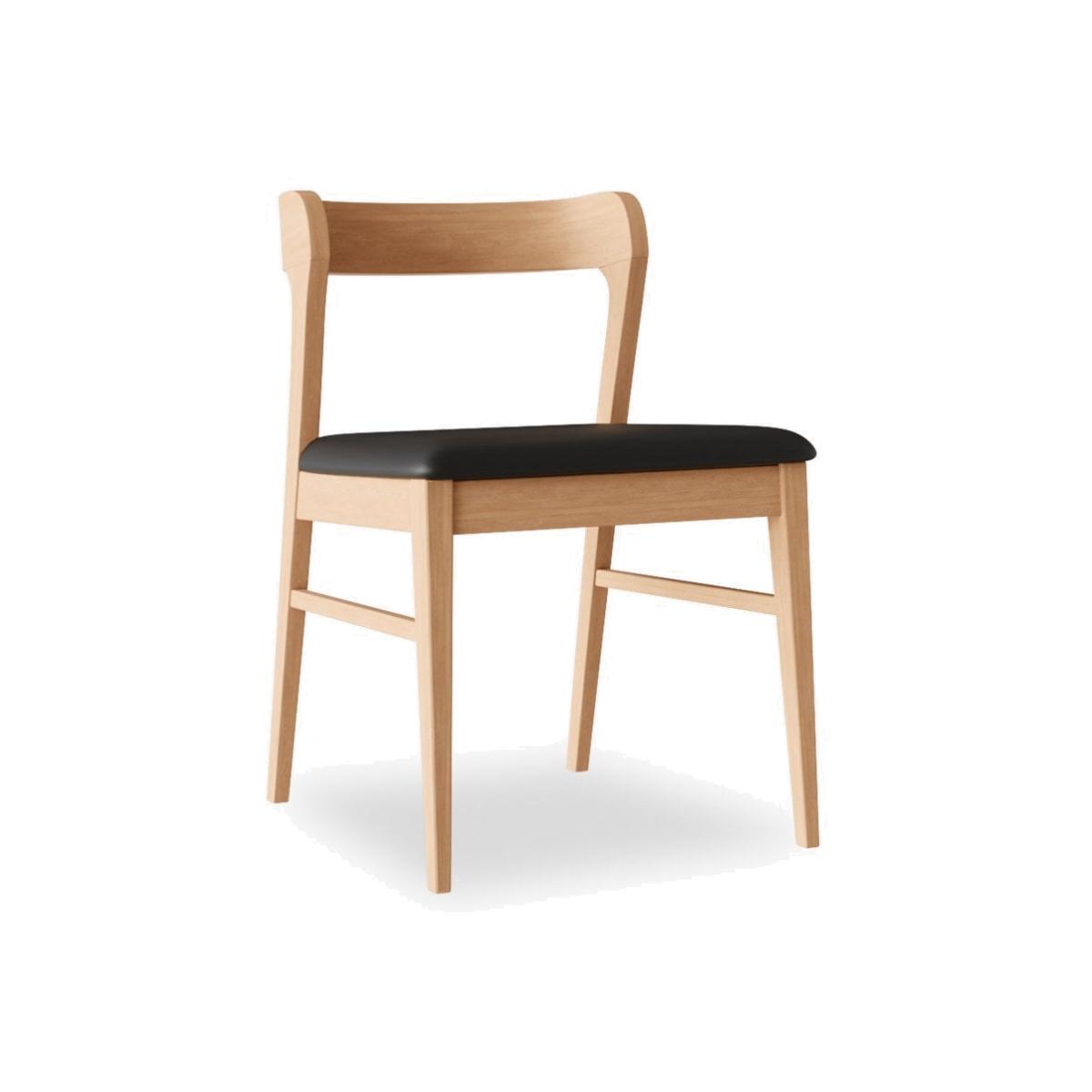The retro-inspired design of the Chiswick Dining Chair has that thick wooden frame stained in a a natural light wood finish for durability and mid century style. The smooth curved backrest along with angled legs offer additional comfort; ideal for bustling kitchens. We love how the backrest hugs the body, the true epitome of functional furniture design. Featuring a padded faux leather seat in a soft black, in keeping with the retro mid-century style.