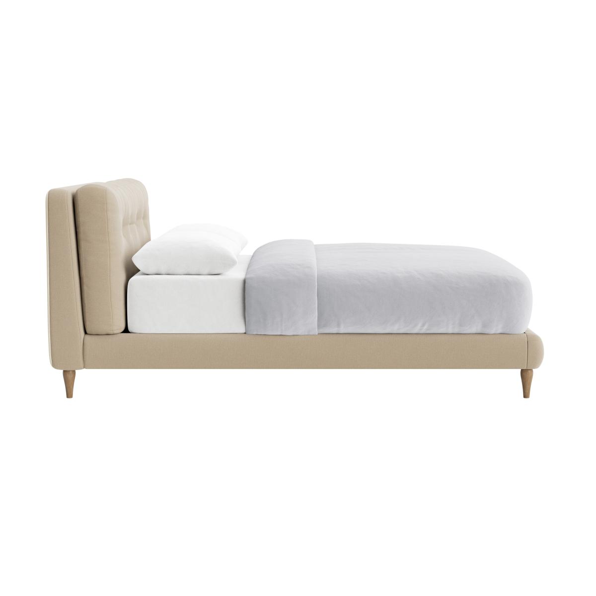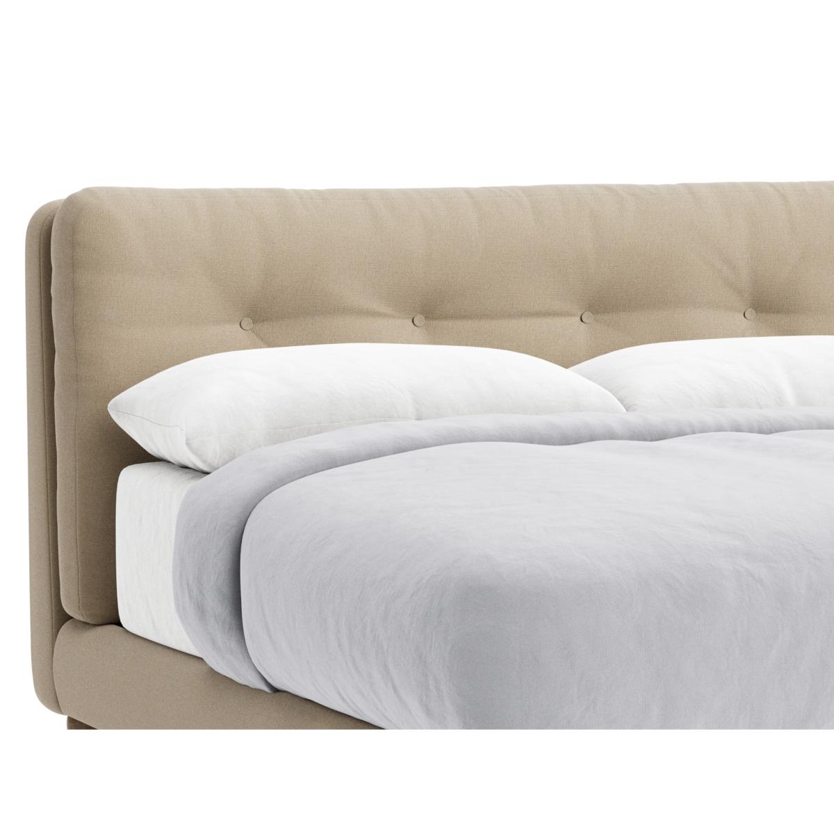 I love this bed frame for its clean, contemporary design and versatile appeal. It works especially well in modern and minimalist interiors, but can also soften a more eclectic style with the right bedding and accessories. The neutral beige tone adds warmth without overpowering the space, making it easy to pair with colourful or textured textiles. Practical styling tips include adding layered bedding in soft, cosy fabrics, and complementing it with side tables and bedside lamps to create a welcoming, functional sleep nook. Its understated design also means it can serve as a neutral canvas, allowing statement pieces or artwork to really stand out in the room.