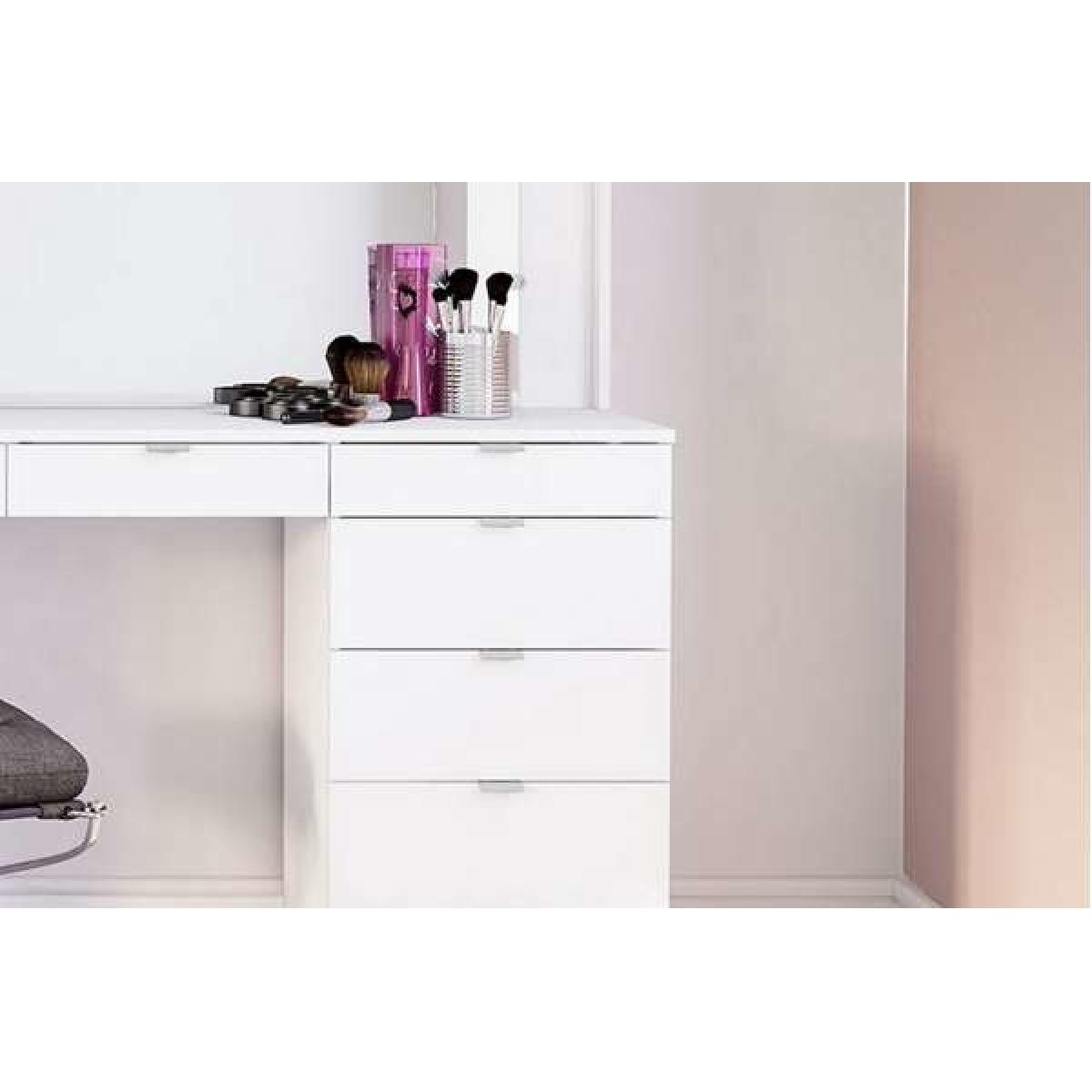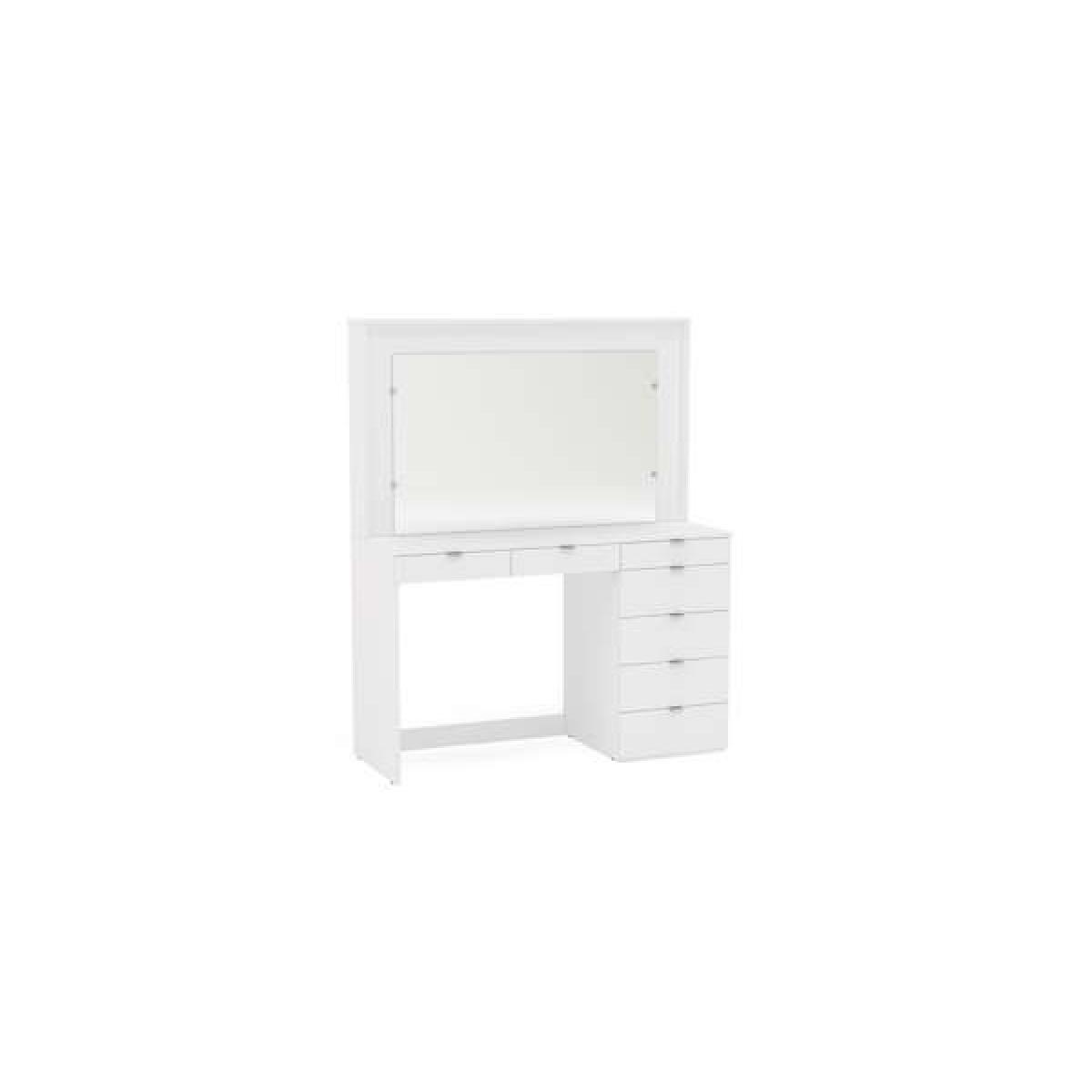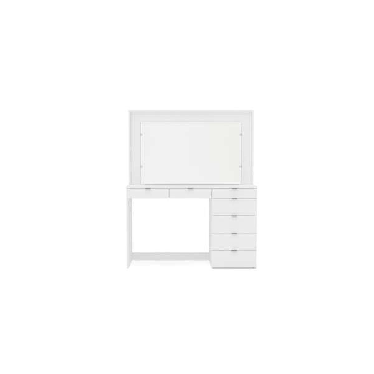 Crisp lines and light make this dressing table the epitome of contemporary style. Any modern bedroom would be enhanced with the Chlo dressing table. With an oversized wall mirror and seven drawers for cosmetics, skincare and personal belongings, this is a piece for today's living. Oversized wall mirror Seven drawers with sleek modern handles Finished in a high white gloss with silver detailing Care instructions; wipe with a dry cloth Easy self-assembly