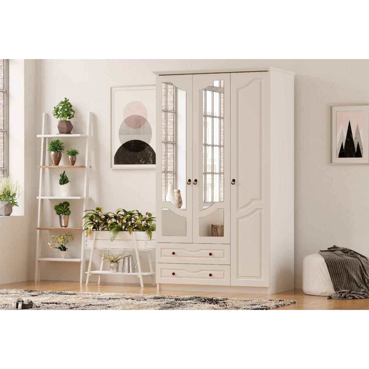 Inspired by the French antiques and country furniture CHLOE range is characterful and practical. Featuring tapered style cornicing and antique style brass effect handles, it boosts timeless design. The glass mirrors on the doors creates a dressing room atmosphere while reflecting light and space around your room. This unit offers a large hanging area, ample compartments and two deep drawers to keep all your clothes and accessories comfortably. Material Membrane coated MDF board, finished with CNC process. Glass mirror. Colour White Dimensions Width105cm,Height210cm,Depth52cm. Delivered flat packed in 4x Boxes. Total Gross Weight105.71kg.!!!IMPORTANT INFORMATION!! Due to the size and the weight of this item, it is shipped out flat packed with 2MA N White Glove Guaranteeed Next Day Delivery Service to your room of choice with PANTHER logistics. After placing your order you can book your delivery by following the email instructions from PANTHER Logistics. !! Once the item is dispatched from our warehouse , cancelation or change of delivery date is subject to 50 charge!! Please note that items can not be left in a safe place or with a neighbour. If you are not happy with this service please let us know before item is dispatched and we will send your item with a standard 2man 7-10 days delivery service instead of next day service.