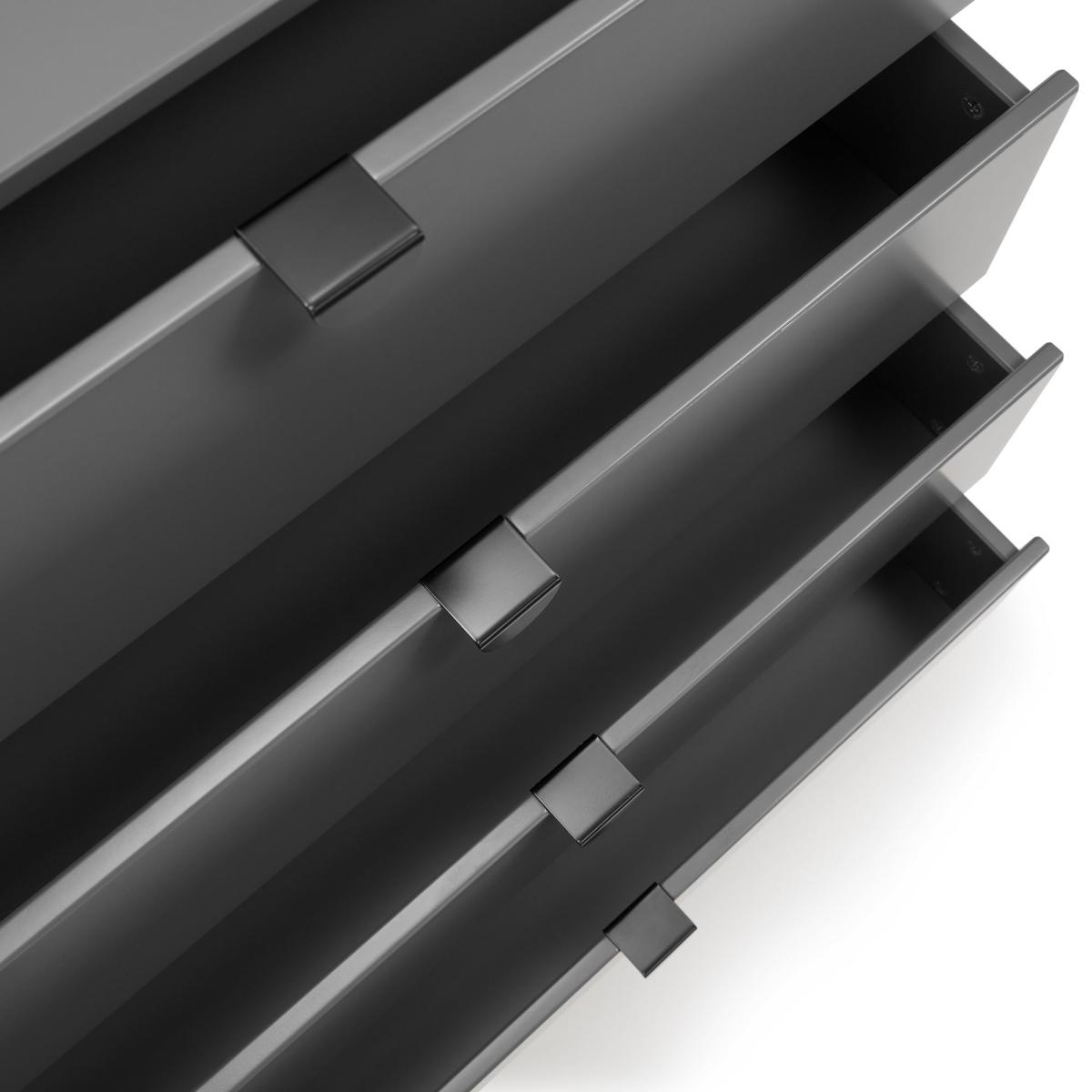 I’d call this the Chloe chest, and what I like most is its clean lines and soft grey finish - it adds storage without overwhelming a room. It works particularly well in contemporary, Scandinavian or muted industrial interiors, pairing easily with pale woods and monochrome accents. Styling tips: lean a round mirror or slim artwork above to soften the straight edges, then group three decorative items on top at varying heights - for example a table lamp, a small plant in a clear pot and a simple vase. Inside, use fabric bins or drawer organisers to keep clothes or office bits neat, and consider placing a narrow runner underneath to define the area.
