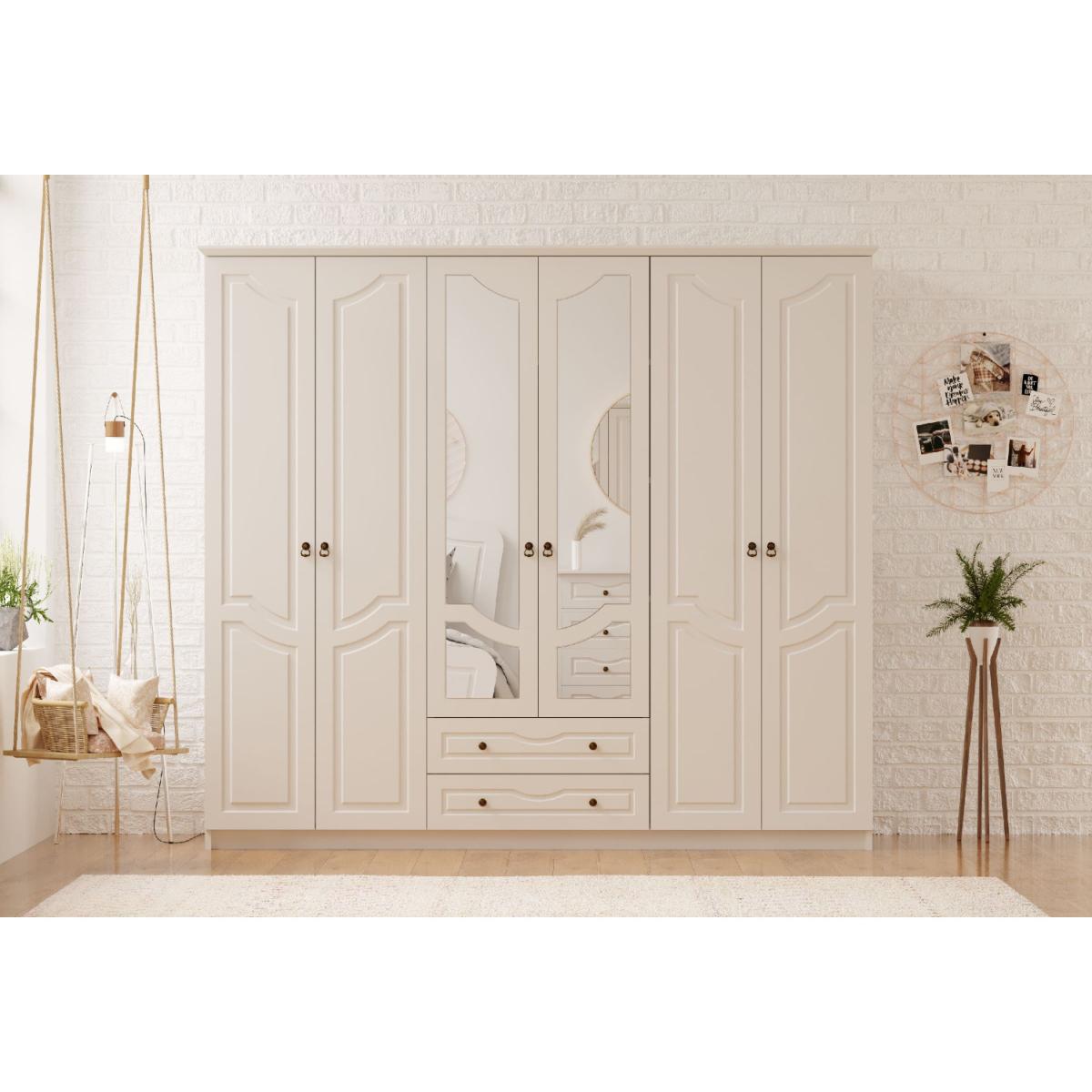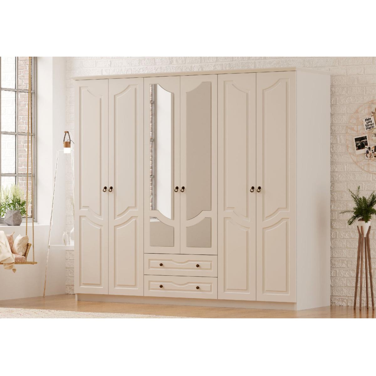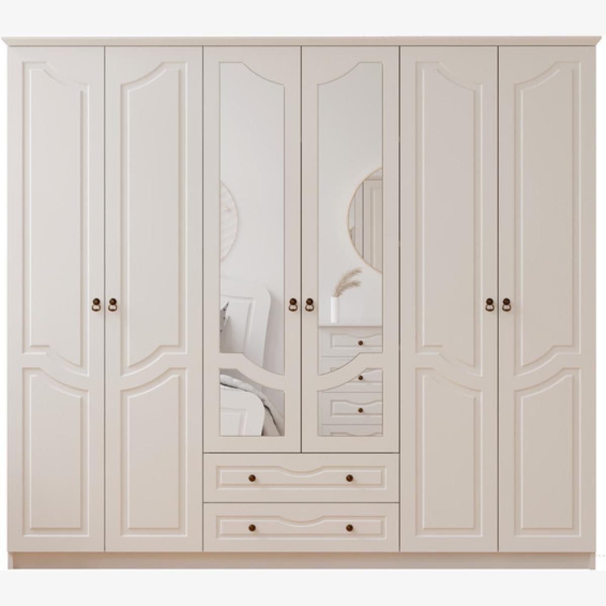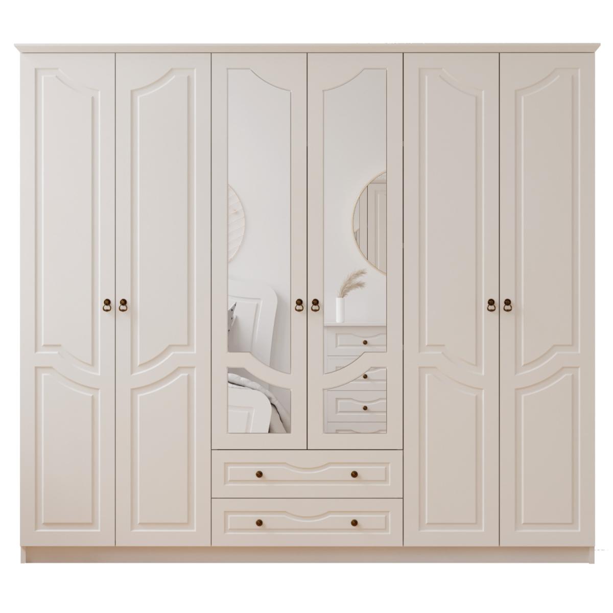Inspired by the French antiques and country furniture CHLOE range is characterful and practical. Featuring tapered style cornicing and antique style brass effect handles, it boosts timeless design. The glass mirrors on the doors creates a dressing room atmosphere while reflecting light and space around your room. This unit offers three large hanging areas, ample compartments and two deep drawers to keep all your clothes and accessories comfortably. Material Membrane coated MDF board, finished with CNC process. Glass mirror. Colour White Dimensions Width210cm,Height210cm,Depth52cm. Delivered flat packed in 7x Boxes. Total Gross Weight178.4kg.!!!IMPORTANT INFORMATION!! Due to the size and the weight of this item, it is shipped out flat packed with 2MA N White Glove Guaranteeed Next Day Delivery Service to your room of choice with PANTHER logistics. After placing your order you can book your delivery by following the email instructions from PANTHER Logistics. !! Once the item is dispatched from our warehouse , cancelation or change of delivery date is subject to 50 charge!! Please note that items can not be left in a safe place or with a neighbour. If you are not happy with this service please let us know before item is dispatched and we will send your item with a standard 2man 7-10 days delivery service instead of next day service.