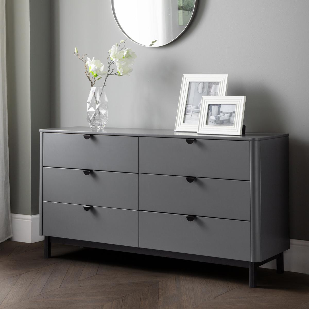 Chloe 6 Drawer Wide Chest - Storm Grey