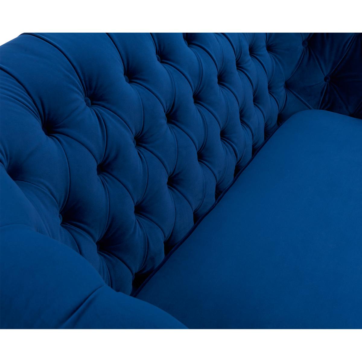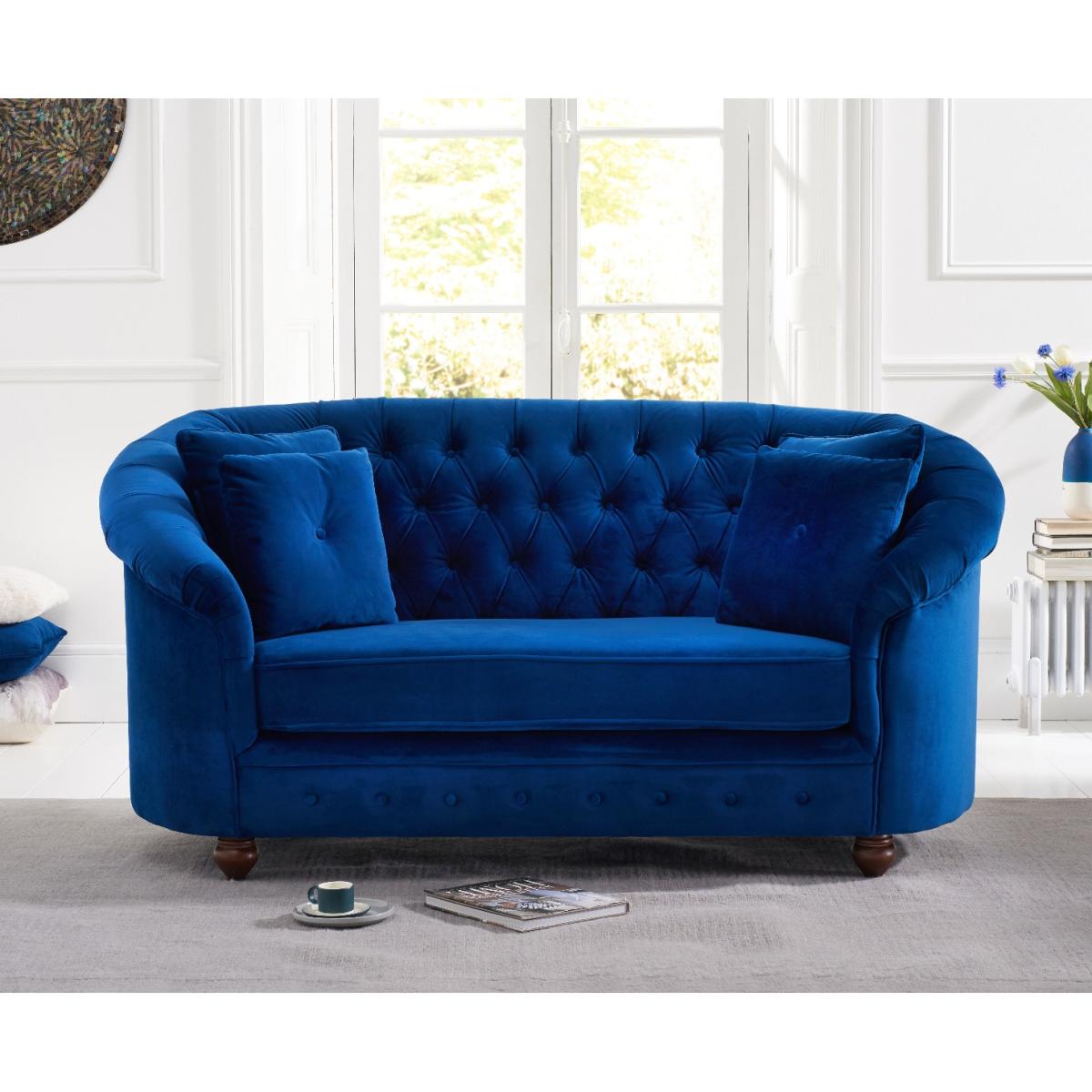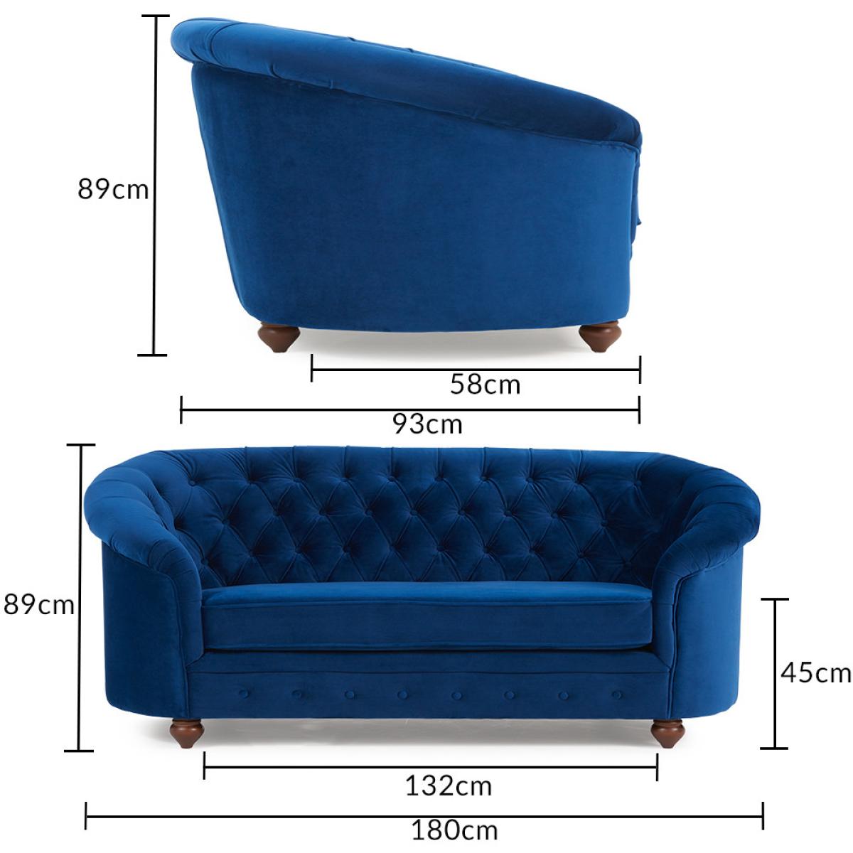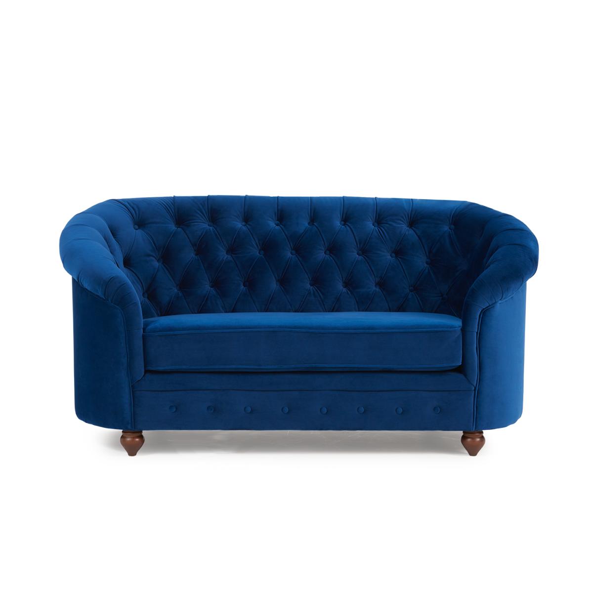 Chic and elegant, the Chloe Chesterfield Blue Plush 2 Seater Sofa adds a touch of luxury to any interior. Comfortably seating 2 people, the sofa is upholstered in rich blue plush fabric and features a stunning tufted button design on the backrest. As comfortable as it is stylish, the blue plush sofa features a densely padded frame and foam filled seat cushions. Complete with turned solid wood legs, the sofa is supplied with 2 free scatter cushions. Also available ingrey.