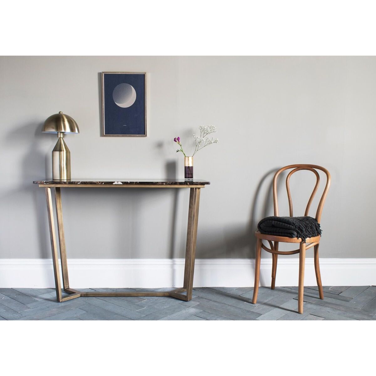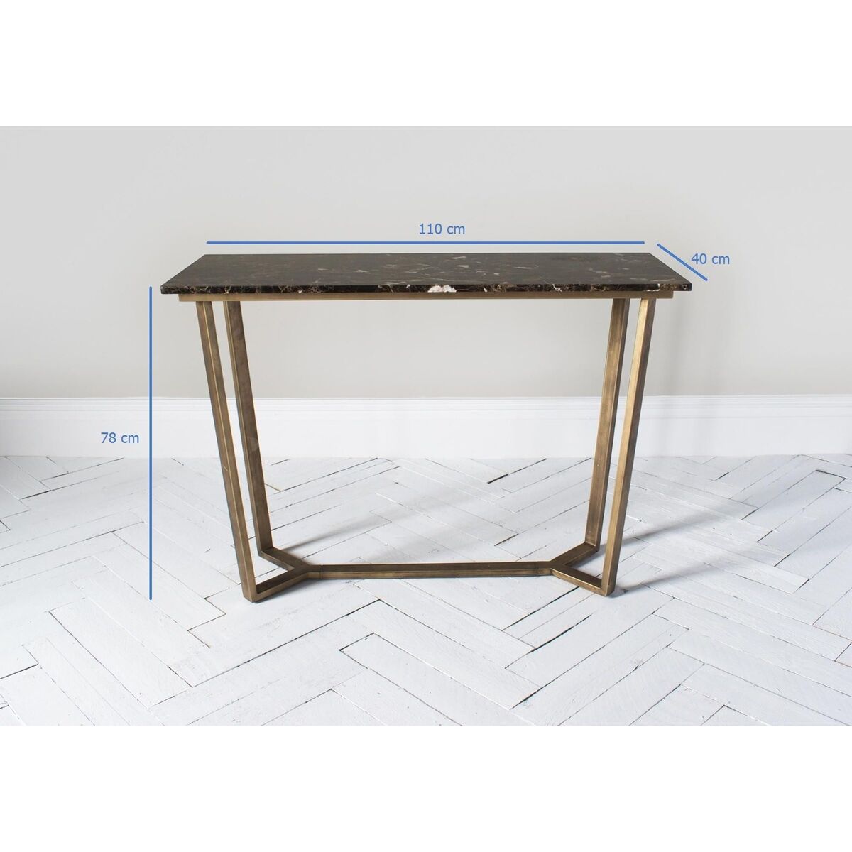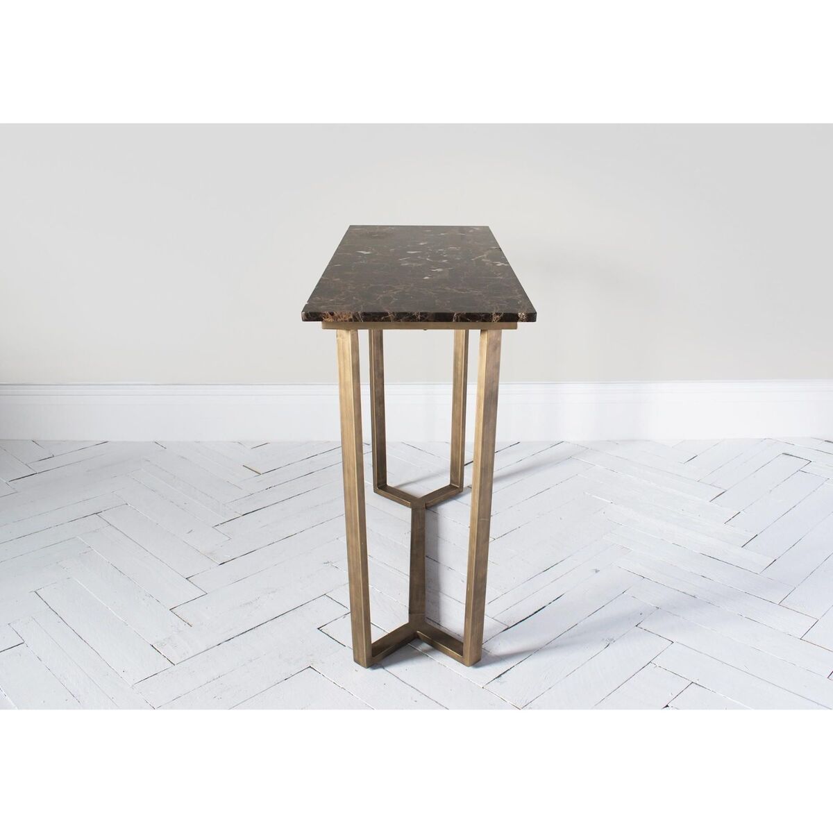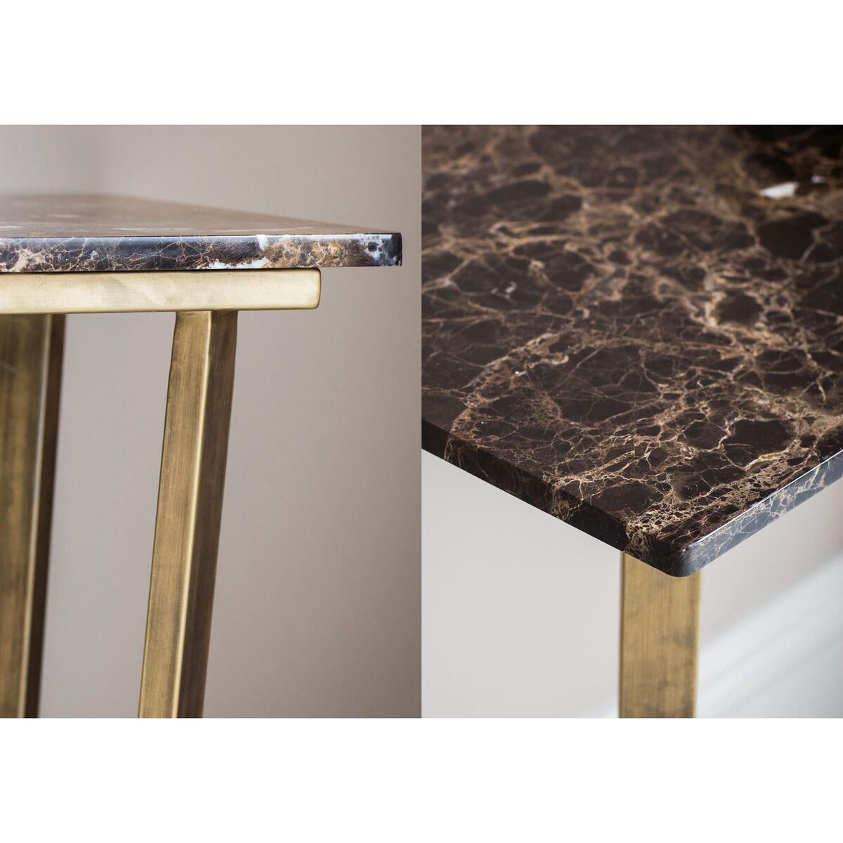 The Chloe console table transfers the refinement of the old times to a modern shape. Its brushed bronze metal base is slightly angled and has been beautifully combined with a crisp, Emperador marble top. Splendid and textural, the Chloe will create a beautiful focal point in any room while adding a stylish surface to display your favourite family portraits. The Chloe console table is part of the Chloe range and is available as a Coffee, Side or Dining Table. Discover: The Chloe Range