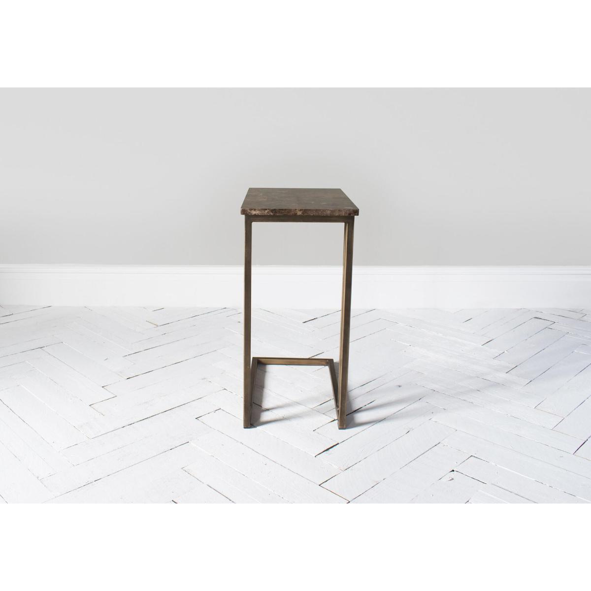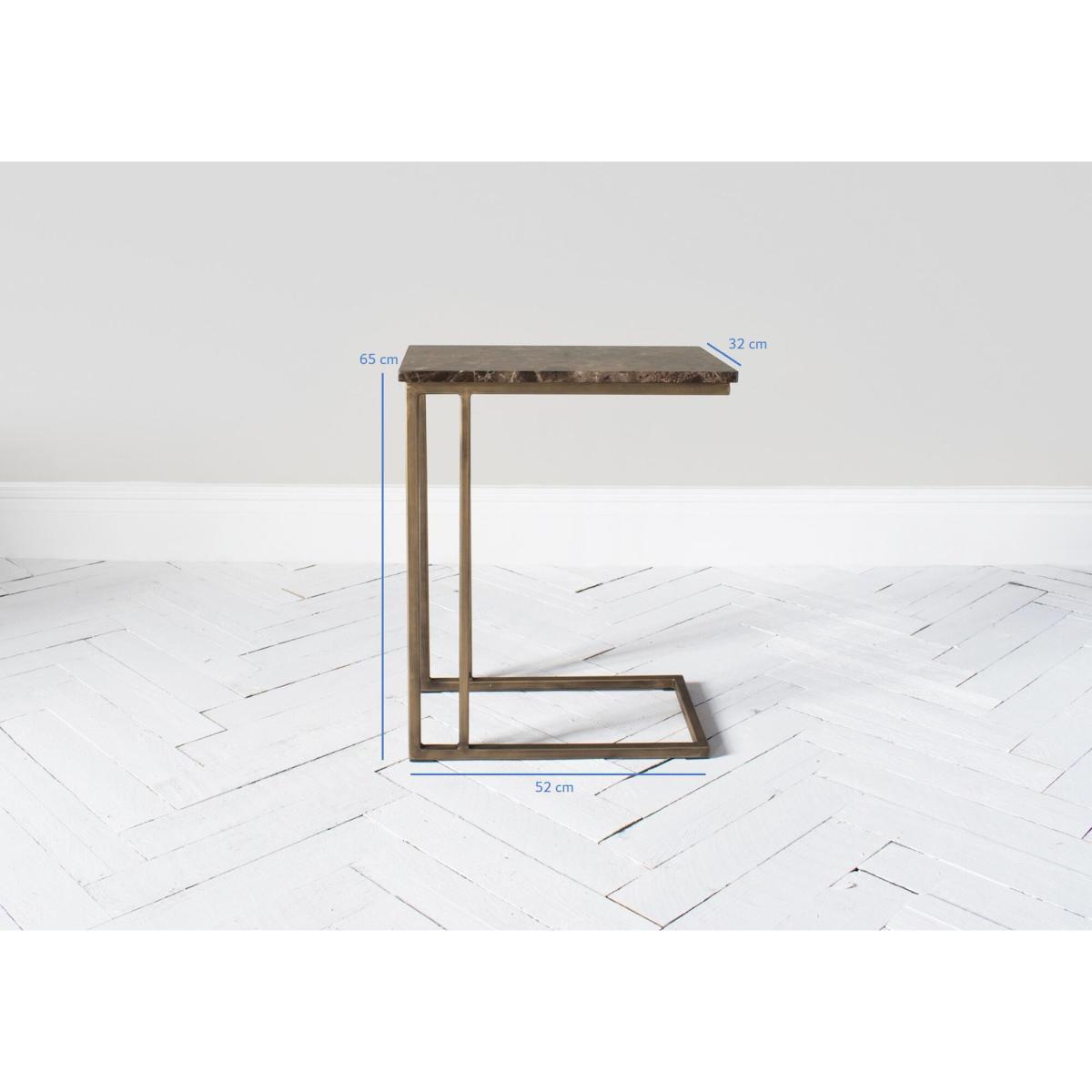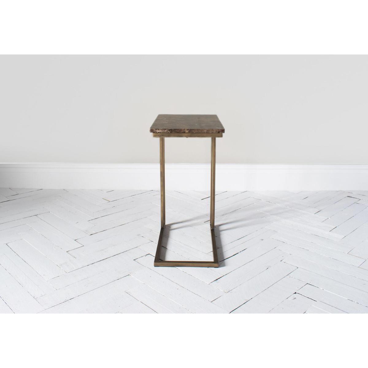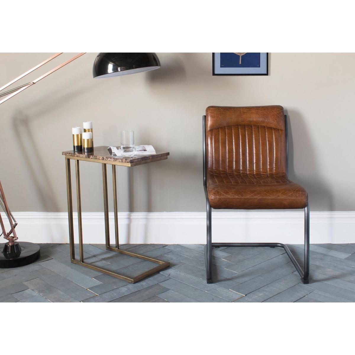 The Chloe Emperador marble side table offers a sophisticated touch to both modern and classic interiors. I love how its rich marble surface adds a sense of luxury and texture, making it a versatile piece that works well in living rooms, bedrooms, or even as a statement piece beside a reading nook. It pairs beautifully with leather and metal accents, as seen in the image, but can also complement softer textiles and neutral palettes for a more understated look. Practical styling tips include using it to display a decorative tray, a statement lamp, or a small plant - keeping the surface balanced keeps the elegance intact. Overall, it’s a stylish yet functional addition that elevates any side table setting.