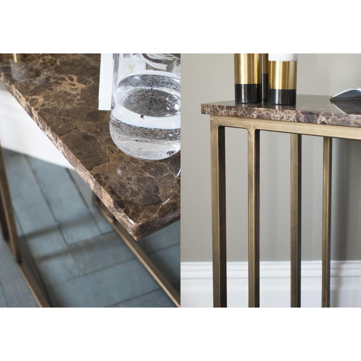 The Chloe supper table transfers the refinement of the old times to a modern shape. Its low brushed bronze metal base has been beautifully combined with a crisp, Emperador marble top. Splendid and textural, the Chloe supper table will create a beautiful focal point in any room. Its original shape makes it not only compact but also handy to enjoy casual dinners or snacks while you watch your favourite movie.