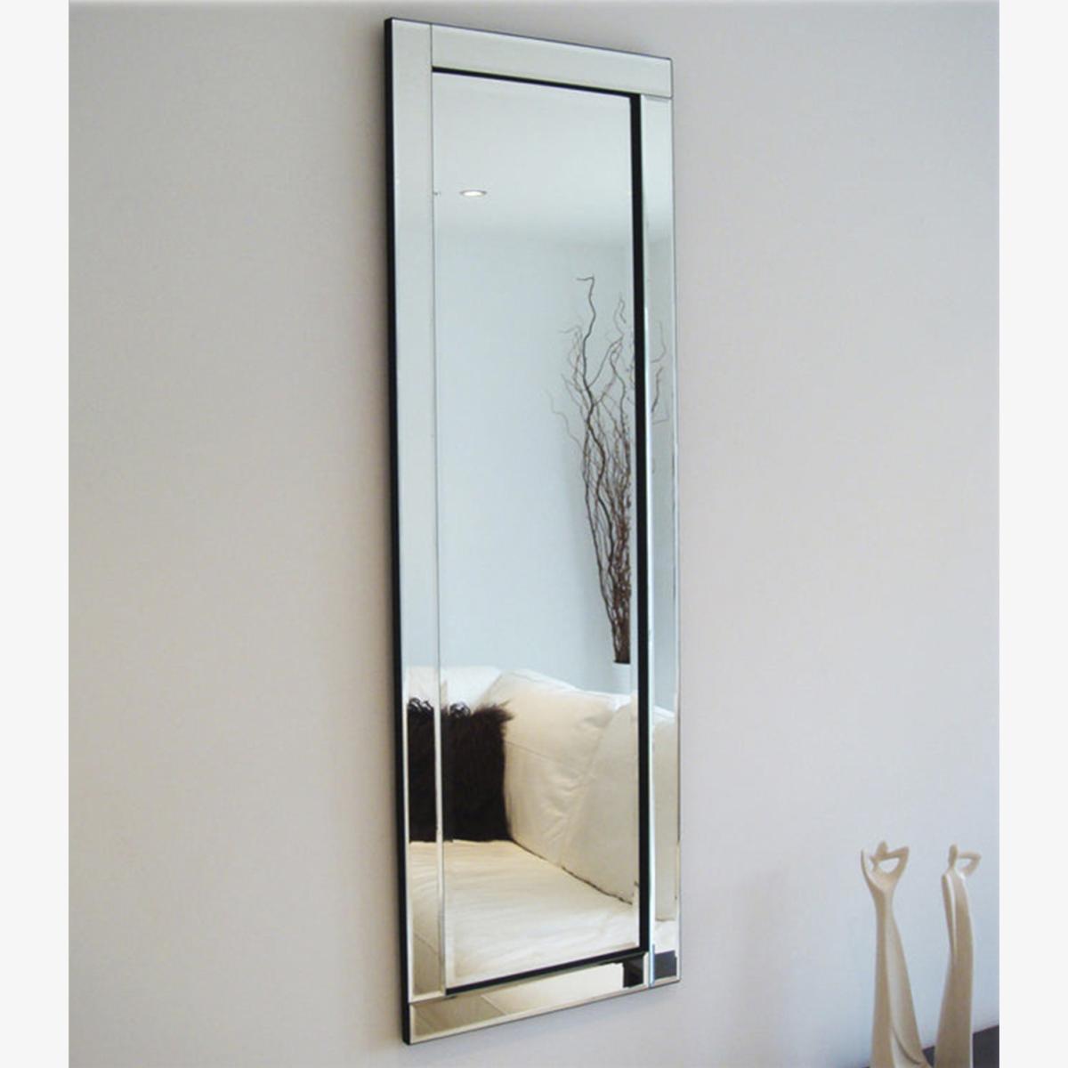 This elegant full-length mirror, encased in a charming glass frame, radiates sophistication and refinement. It commands attention and deserves a prominent place in your home, seamlessly complementing both contemporary and traditional decor styles. Its minimalist design exudes timeless class, making it an ideal subtle focal point for any room. With the flexibility to be mounted vertically or horizontally, or even leaned for a modern touch, this versatile mirror adapts effortlessly to your space. Its all-glass construction ensures it reflects light beautifully, brightening any room it graces. Whether adorning a dressing room, bedroom, or hallway, its enduring quality and impeccable finish make it a lasting addition to your home decor.