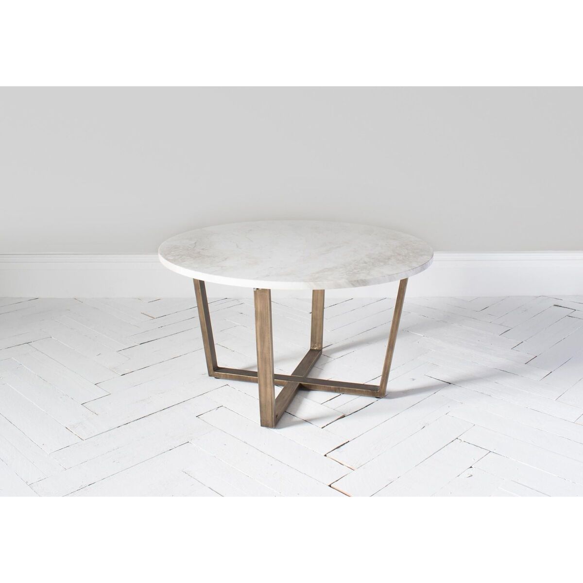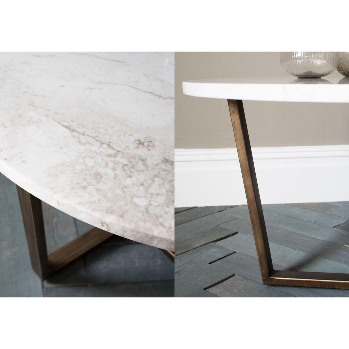 The Chloe coffee table transfers the refinement of the old times to a modern shape. Its low brushed bronze metal base is slightly angled and has been beautifully combined with a white marble top with neutral grain tones. Splendid and textural, the Chloe will create a beautiful focal point in any room while adding a stylish surface to display your favourite vases. The Chloe coffee table is part of the Chloe range and is available as a Console, Side or Dining Table. Discover: The Chloe Range