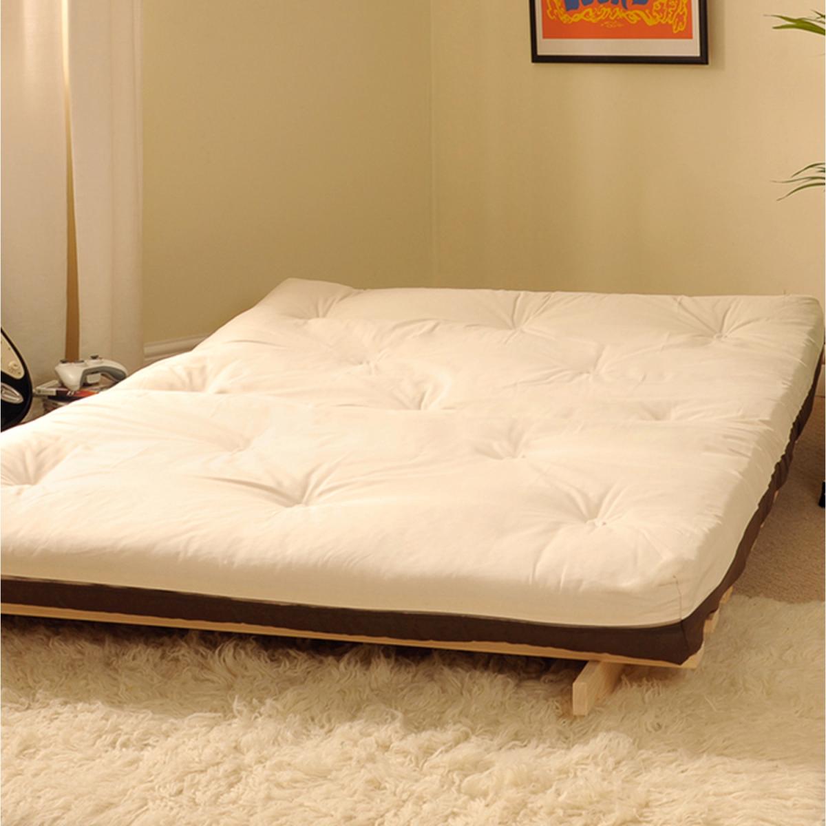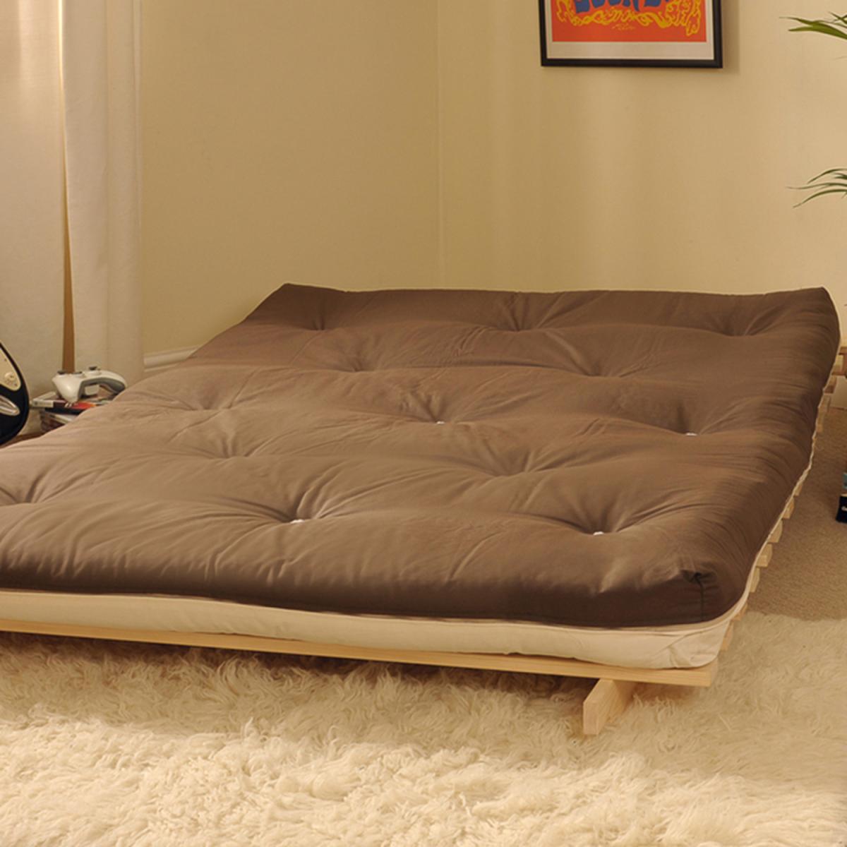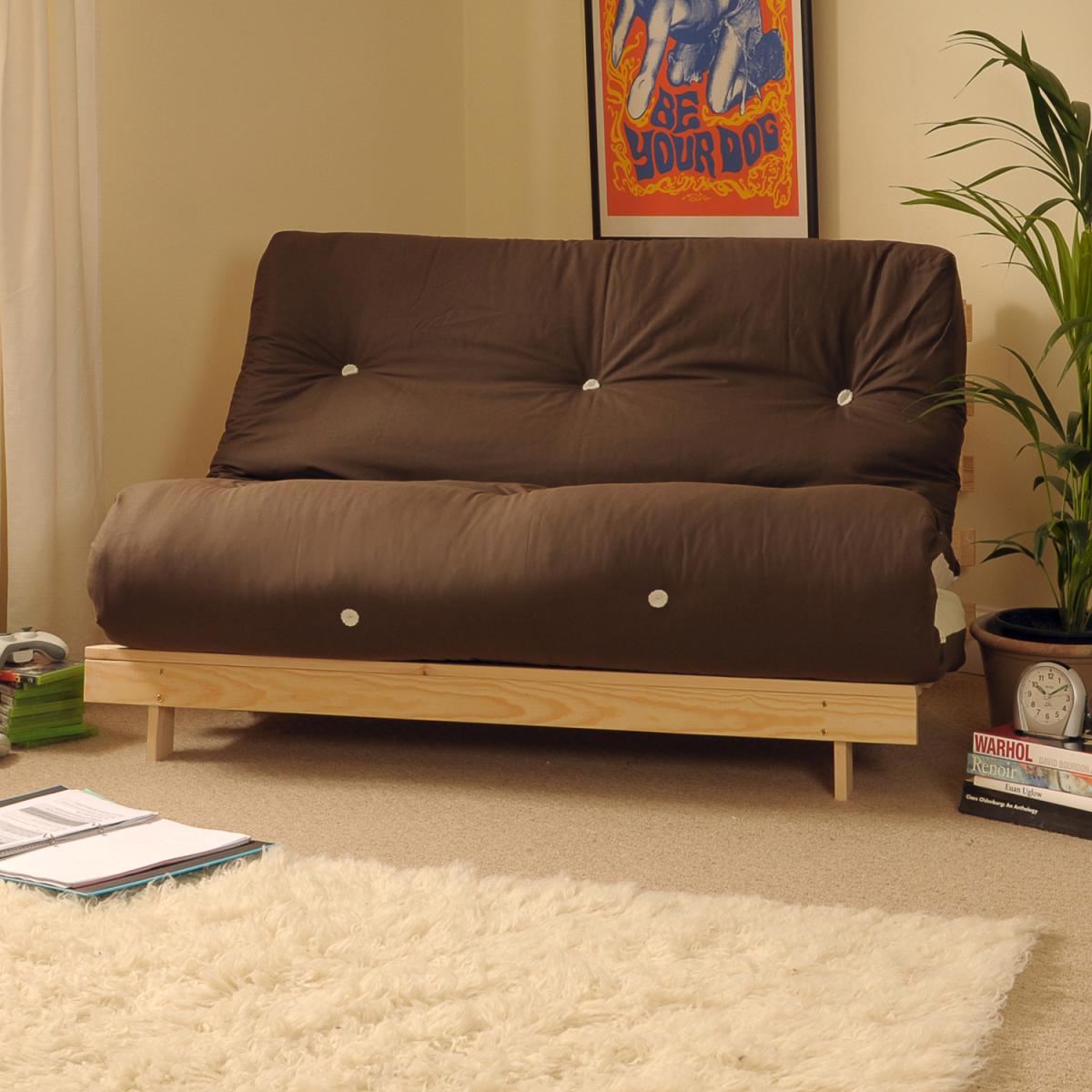 This futon is a great value, easy to use futon is a great addition to any room. A comfortable, compact solution for that unexpected guest. The base is a solid, wooden pine frame. It is sturdy, practical and can be painted easily, to match any room. The futon mattress is filled here by us with quality is woven filling of natural materials including felt and wool, with non-removable cover in 100% cotton drill. The mattress is made especially for a comfortable sleep. Each mattress is finished to a high standard, looking great in your chosen colour, with white daisy tufts on every single one. In seconds the futon goes from a comfortable 2 seater sofa to a full-sized double bed and vice versa. Great for any unexpected guests, this futon provides the perfect solution for sleepovers. It is ideal for bedrooms and conservatories. The base is ready assembled, simply screw on the feet (included) and pop on the mattress.