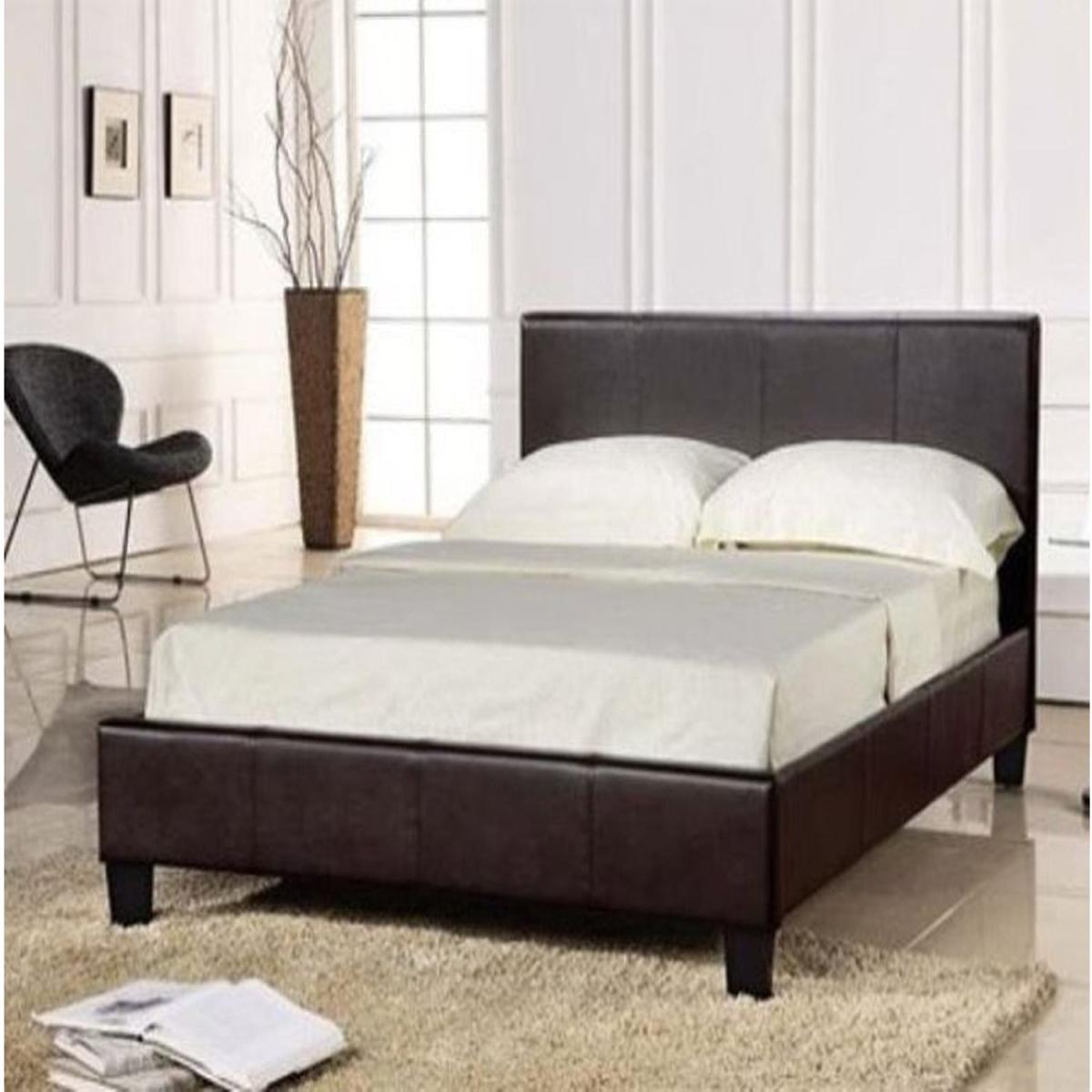Chocolate Faux Leather Bed Frame - Double