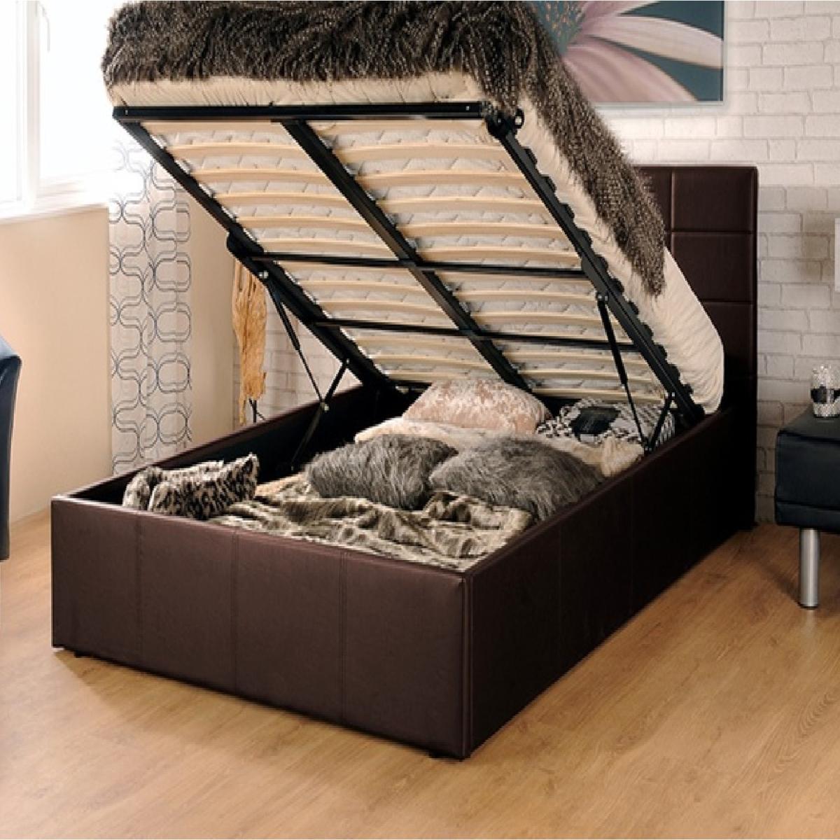 Chocolate Faux Leather Gas Lift Ottoman Bed - Single