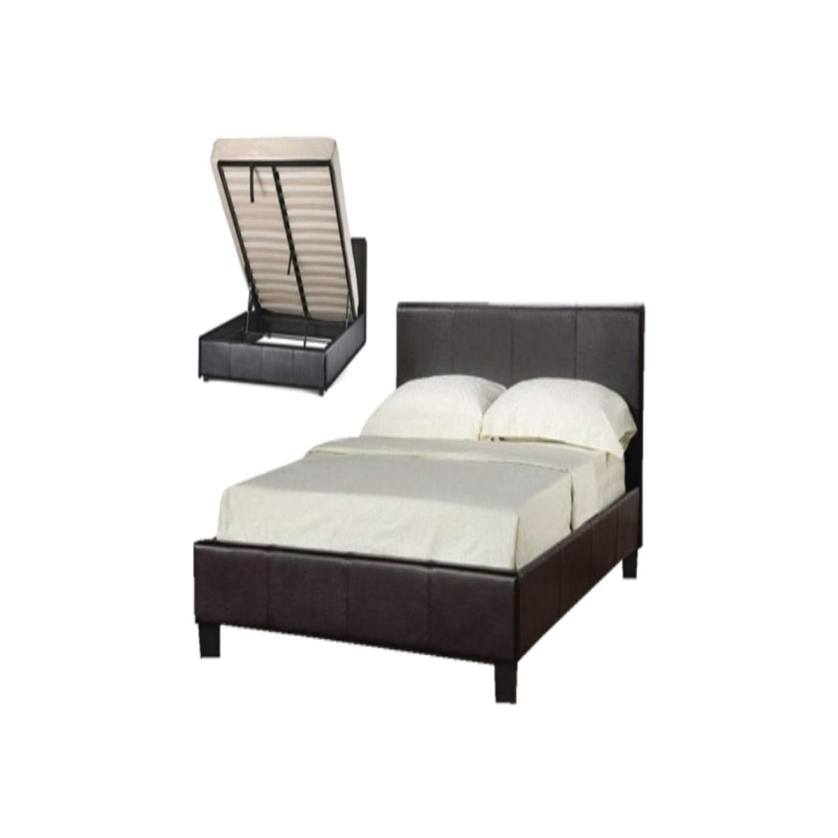 Chocolate Faux Leather Storage Ottoman Bed - Brown / Small Double / No
