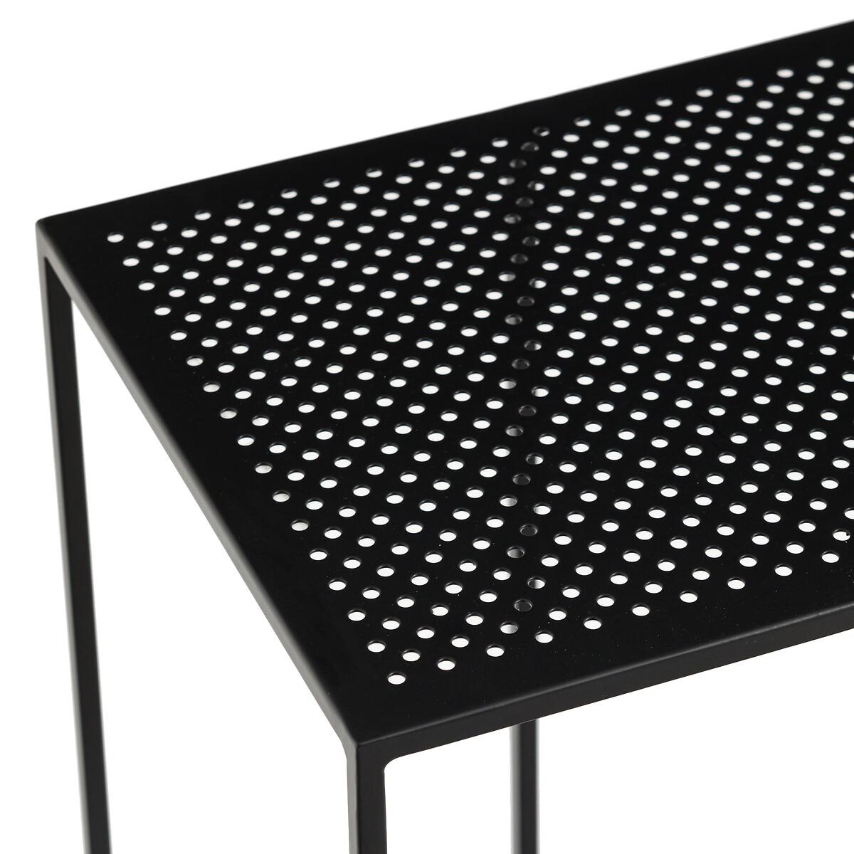 Graphic and contemporary. An openwork metal top, a square section base and a clean line, this is how the Choe side table brings style and allure to your outside space.