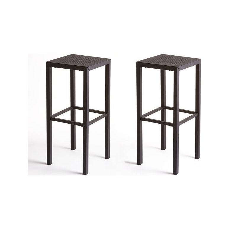 Set of 2 Choe perforated metal bar stools. Metal is still a top pick when it comes to outdoor furniture for your garden or patio. A pared down design for an ultra contemporary look.