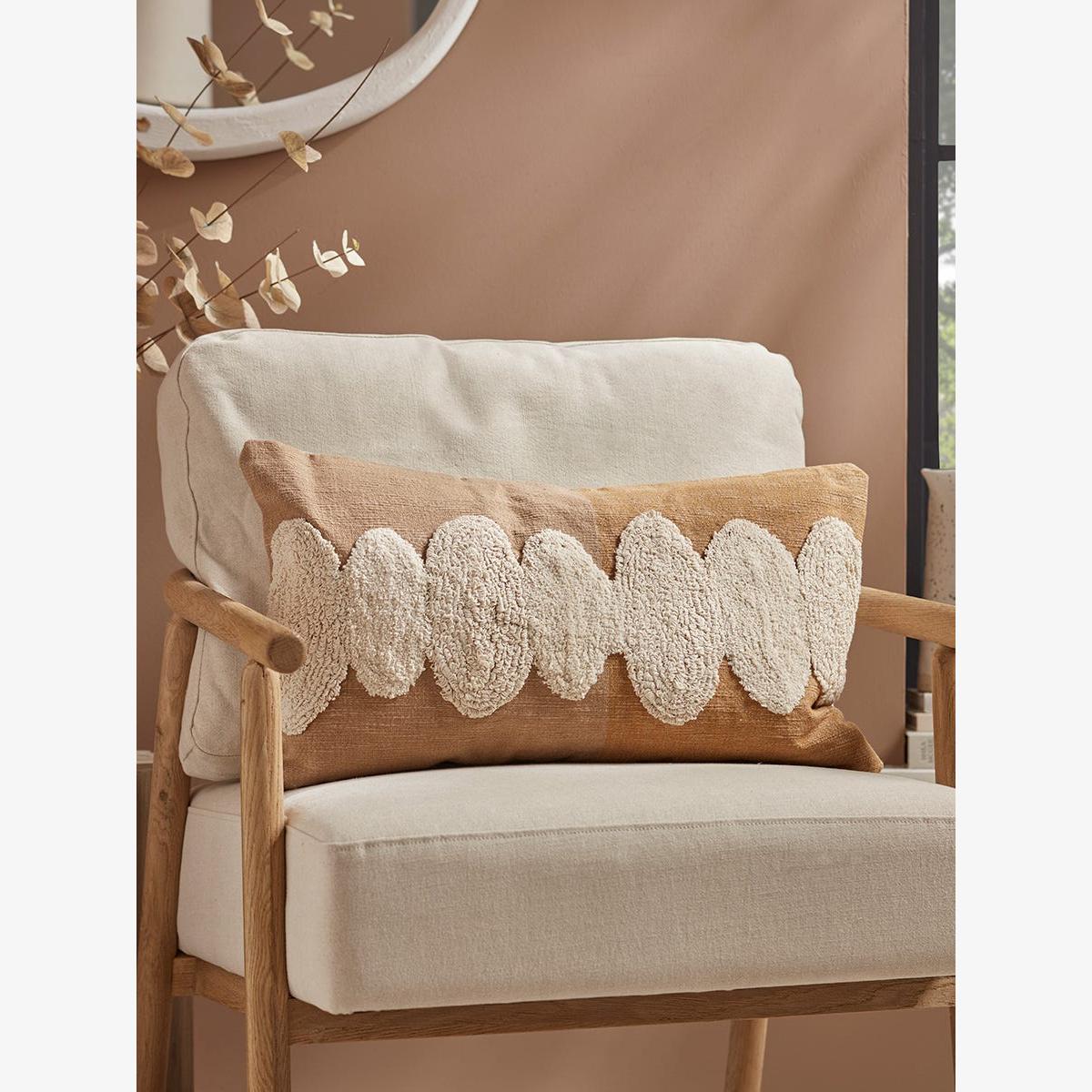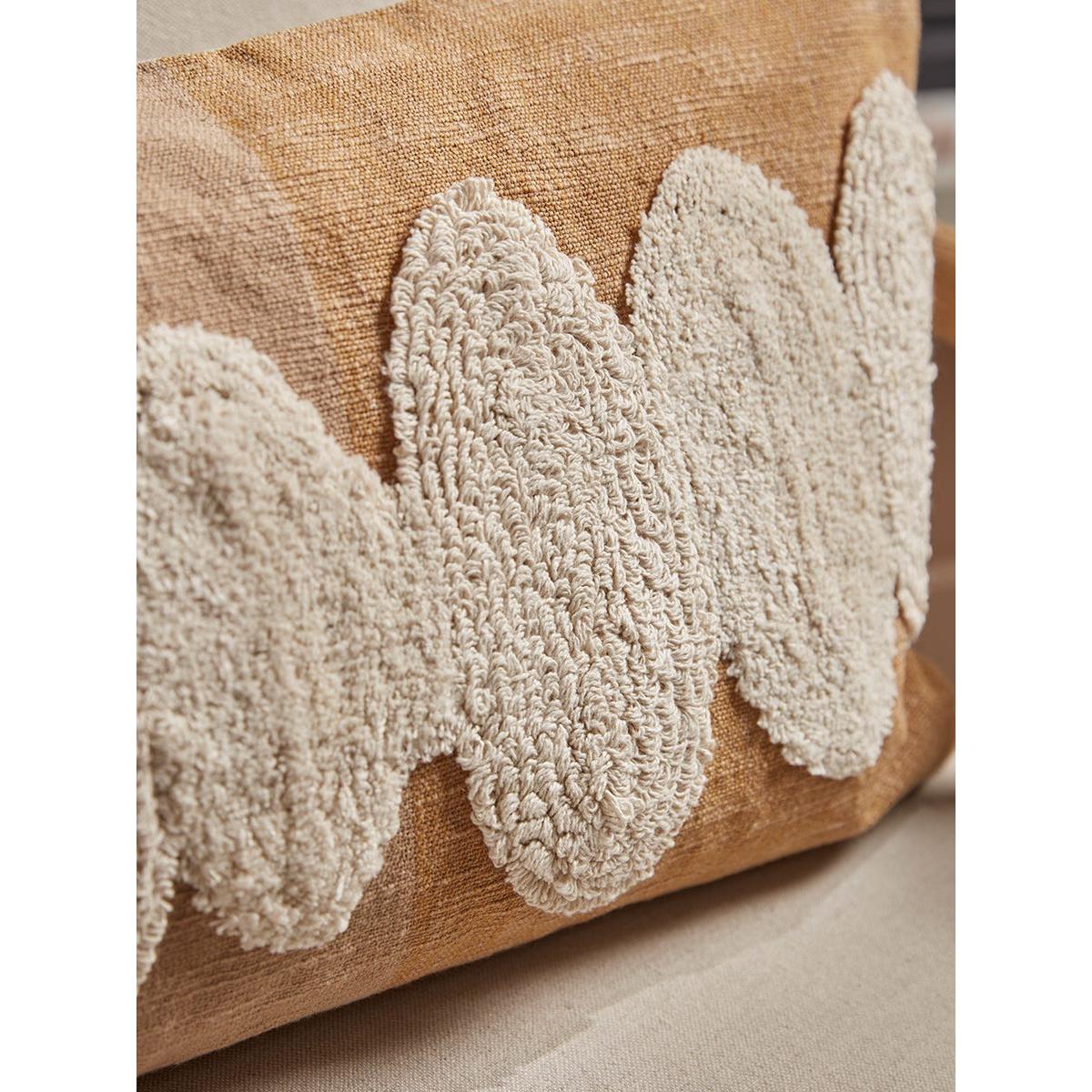 French knots have been embroidered on this cushion to create a wonderfully tactile pattern of pebble shapes against a graduated background of warm sand-toned stripes. Perfect for a coastal themed room, or as a textural addition to a neutral scheme, the Chora Cushion makes a lovely new season update.