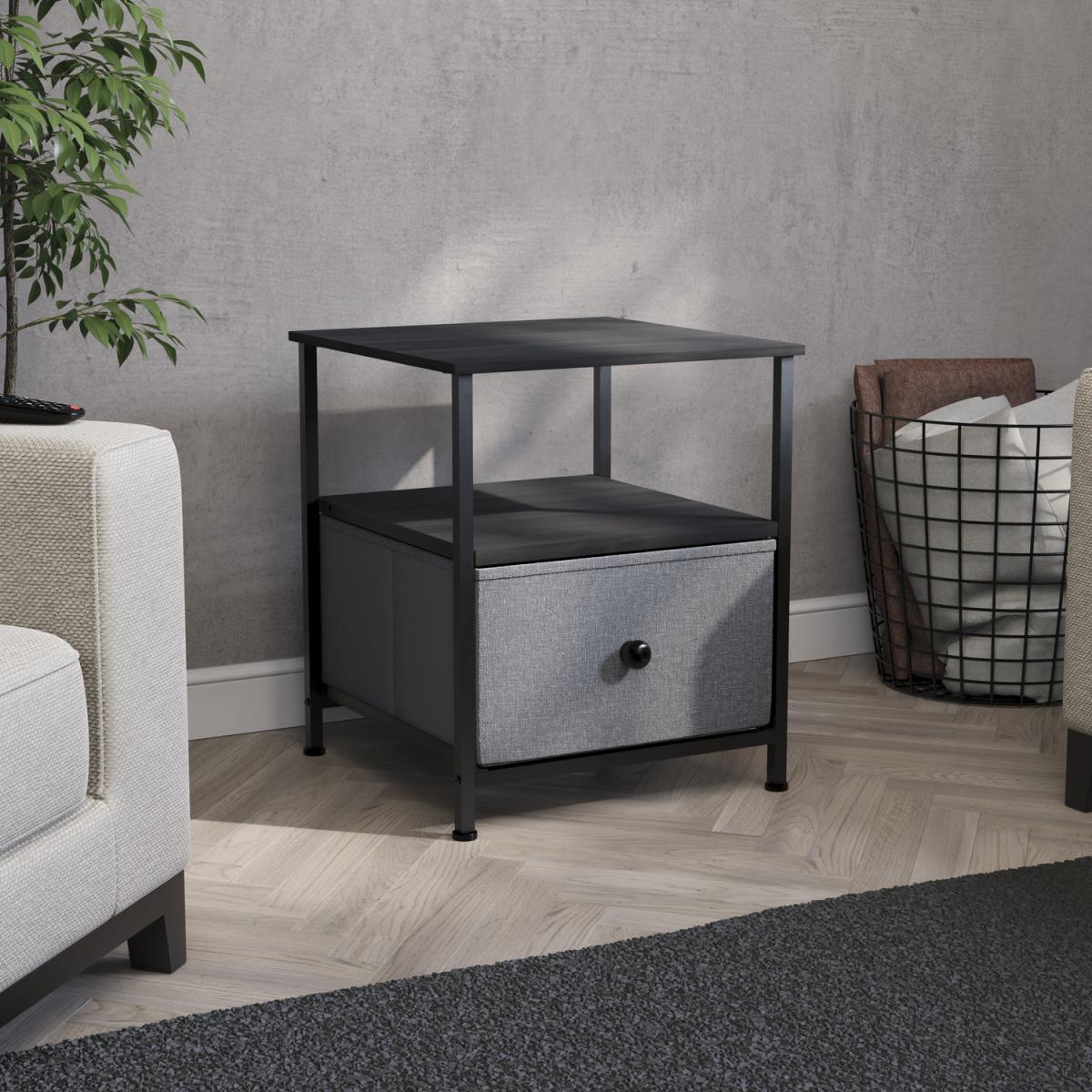Chorley Bedside Table - 1 Fabric Drawer - Grey & Black