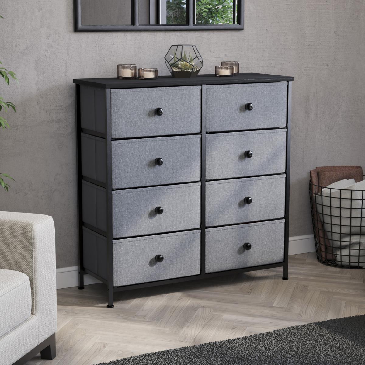 Chorley Fabric Chest of Drawers - 8 Drawer - Grey & Black