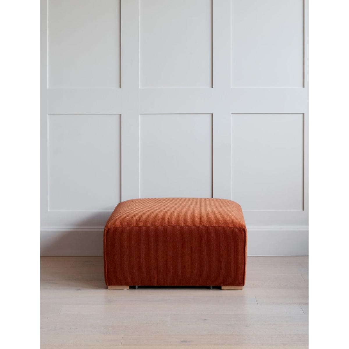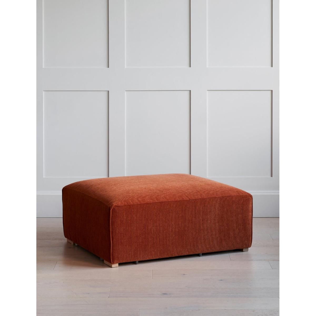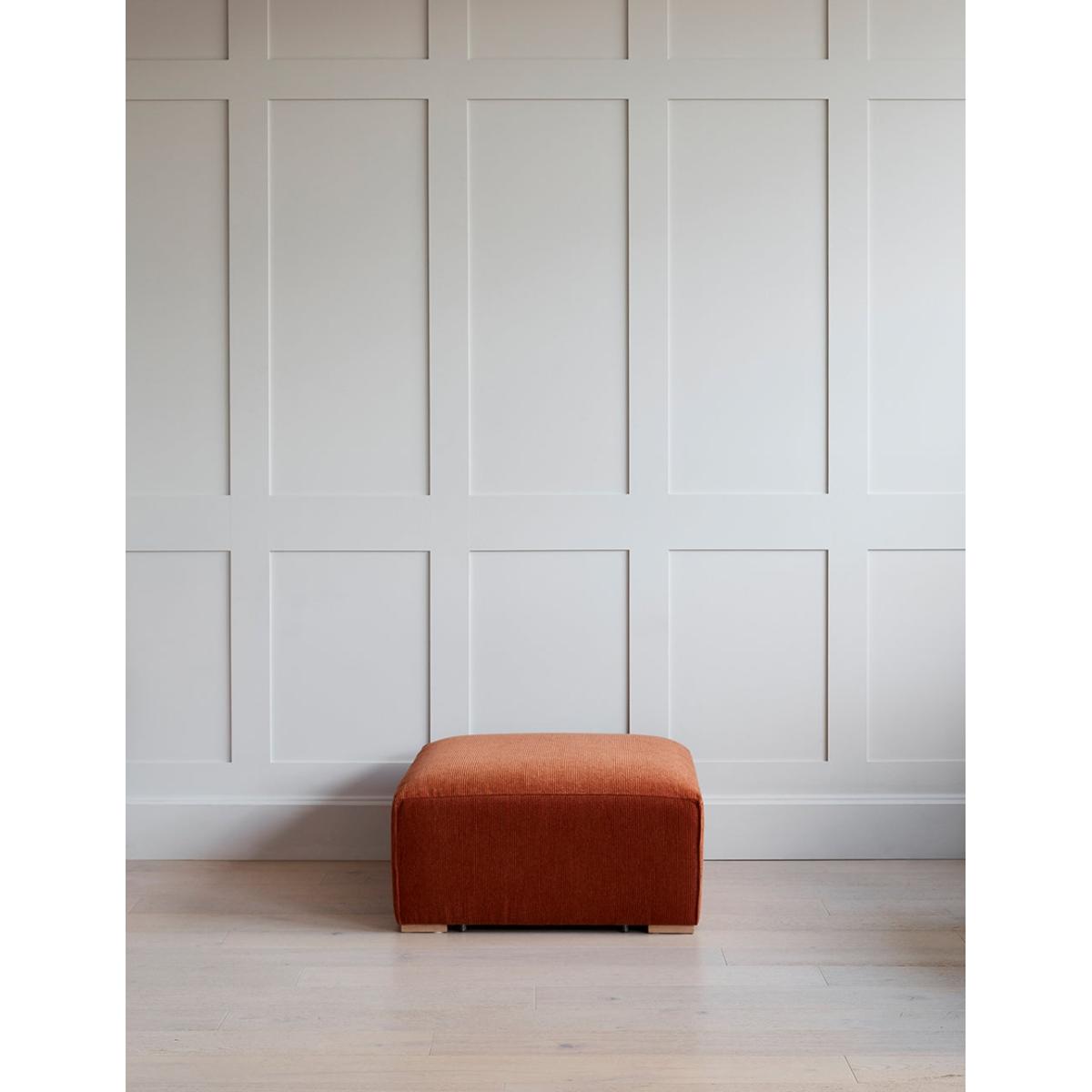 The simple silhouette of the Chorlton footstool is the perfect pairing for the matching sofa or corner sofa. The boxy silhouette and low legs have a contemporary aesthetic, yet the simple design of the stool also lends itself to more traditional rooms. Use the stool to put up your feet, as an extra seat for guests or in place of a coffee table. We also offer a matching sofa and corner sofa Photographed here in Rust Cord. The leg colour in the photograph is Bleached Oak All other images are computer generated as a colour reference with a Bleached Oak leg. We recommend you order a free fabric swatch to see your chosen material up close before ordering your sofa, armchair or footstool!