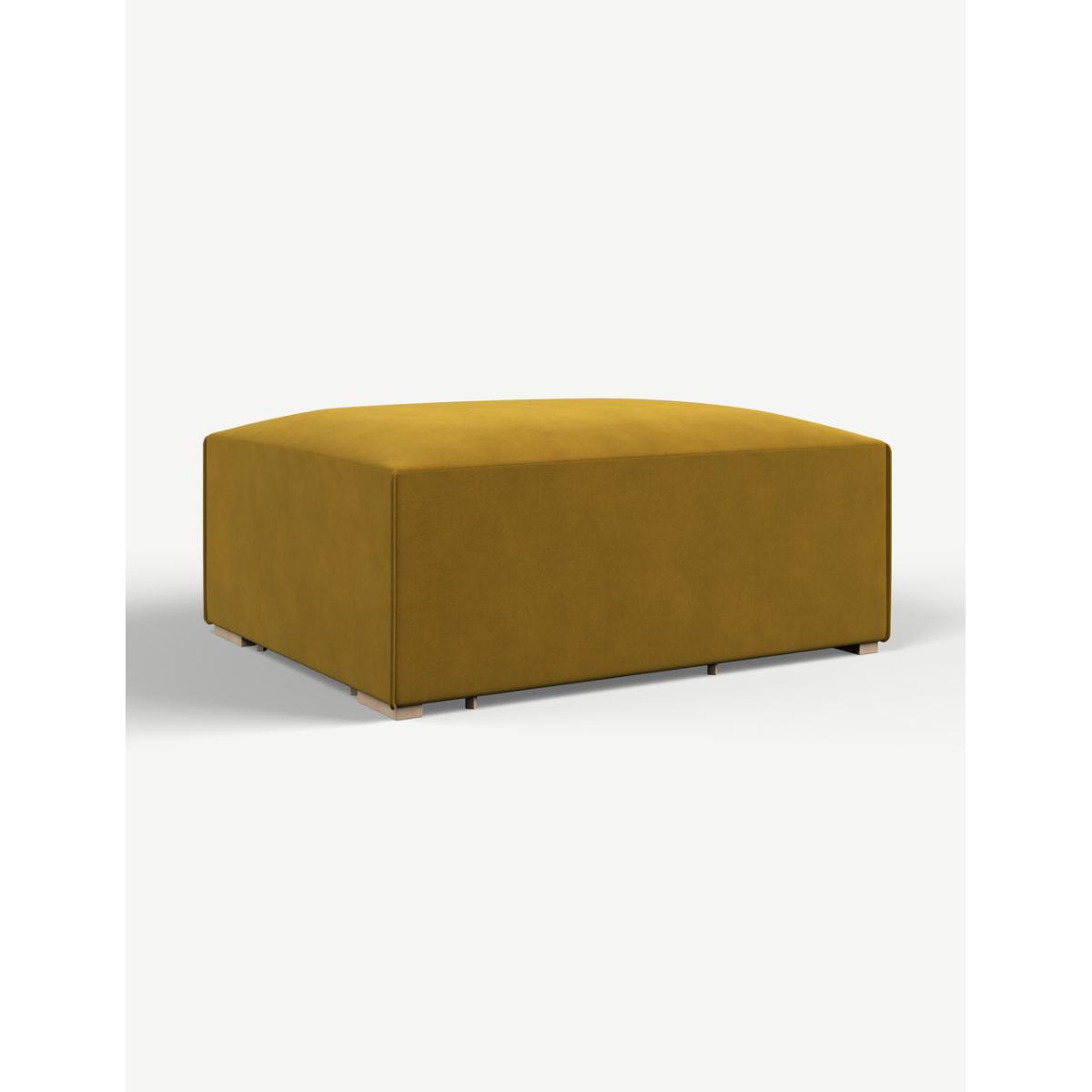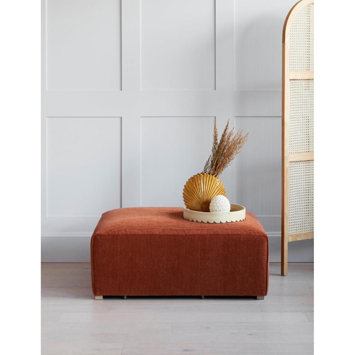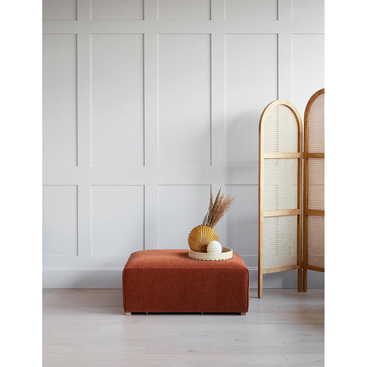 The simple silhouette of the Chorlton footstool is the perfect pairing for the matching sofa or corner sofa. The boxy silhouette and low legs have a contemporary aesthetic, yet the simple design of the stool also lends itself to more traditional rooms. Use the stool to put up your feet, as an extra seat for guests or in place of a coffee table. We also offer a matching sofa and corner sofa Photographed here in Rust Cord. The leg colour in the photograph is Bleached Oak All other images are computer generated as a colour reference with a Bleached Oak leg. We recommend you order a free fabric swatch to see your chosen material up close before ordering your sofa, armchair or footstool!