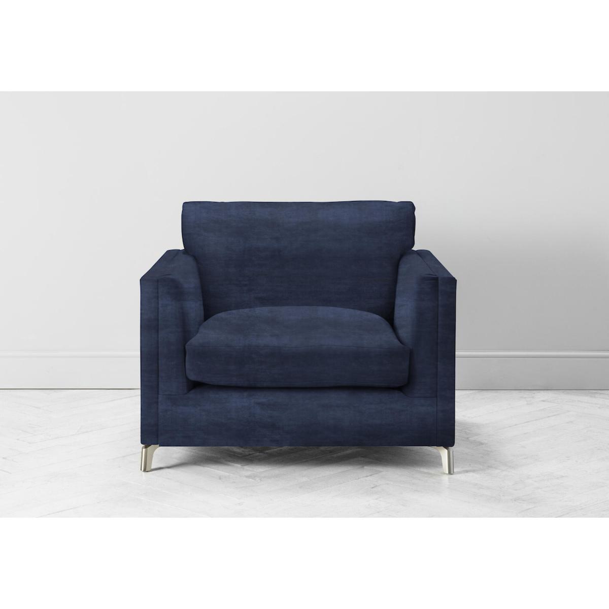 I love this armchair for its bold colour and contemporary silhouette. The blue lavender shade is versatile enough to complement both neutral and coloured palettes, making it a great statement piece in a modern or classic interior. It works particularly well in cosy living rooms or reading nooks, adding a touch of sophistication without overwhelming the space. Style tip: pair it with wooden or metallic accents and soft textiles like throws or cushions in complementary hues to create a layered, inviting look. Its compact size also makes it suitable for smaller rooms or as an accent chair, offering both style and functionality.